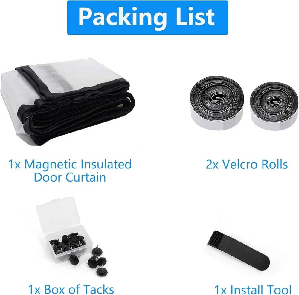 Magnetic Thermal Insulated Door Curtain,Waterproof EVA Door Cover,Fit Doors Size Up to 30"x78",Temperature Protection Insulated Doorway Curtain Partition,Patio Self-Closing Doors Net Screen How To Choose The Proper Size:Actual door curtain "W x "H,included velcro-edges,fits door size max to:30''W x 78''H (without door frame) !The curtain size should be at least 2" wider than your door width,and " higher than your door height(NOT include the door frame part).Use the dimensions of the inner door frame to add 2" in width and " in height to select the appropriate size!Recommened to select the larger size(closest size),not the smaller size Eco-friendly EVA Insulated Material:Our thermal door curtain is made of EVA plastic insulated material which effectively block the hot or cold wind from coming into the room and maintain the temperature inside.Features excellent heat resistance and cold resistance,will not deform or shatter even after prolonged exposure in summer or in winter!Please rest at ease,ultra-high purity EVA materials is non-toxic,odorless and does not contain any harmful substances,100% safe for your kids and pets 50 Powerful Magnets&4 Weighted Blocks:The doorways curtain is equipped with 50pcs strong magnetic blocks which are sewn right into the seams along the entire curtain length to ensure fast,automatic and silent closure,offer better sealing performance!Extra 4 large and heavy gravity sticks are added into the curtain bottom to improve the wind resistance ability!The magnetic self-closing design offers you a great experience with hands-free opening,which is also very friendly to your kids and pets " Widened Top Hook&Loop Strip:While other insulated door net screens have only " narrow hook&loop strip,we adopt widened and reinforced " wide hook&loop strips on the top,which increases contact surface and effectively enhances the adhesion to prevent falling off and makes installation more easier!The entire frame of the door curtain is wrapped with widened webbing and reinforced by double-stitched seam to prevent the screen curtain from loosening or tearing for longer life Good Light Transmittance:Translucent color with diamond pattern,light transmittance up to 70%,our magnetic self-closing doorway cover strikes the perfect balance between waterproof,windproof,rainproof,snowproof and good clear visibility!It can act as an excellent barrier against those pesky insects,flies,leaves,debris,dust,dirt and other unwanted guests while not sacrificing visibility,it also can works as a temporary door to insulate one room from another,while giving a misty beauty