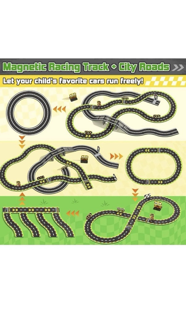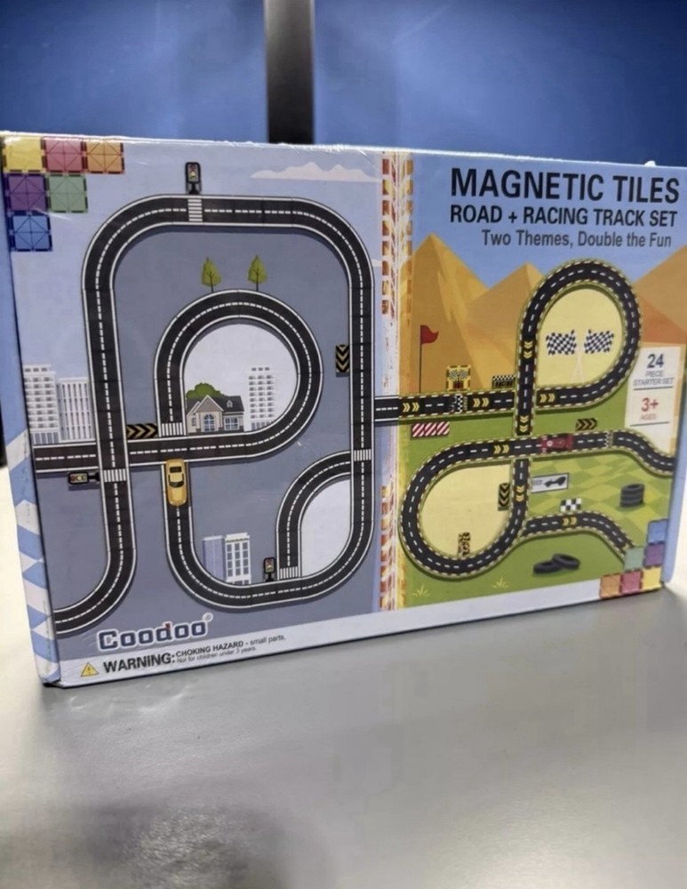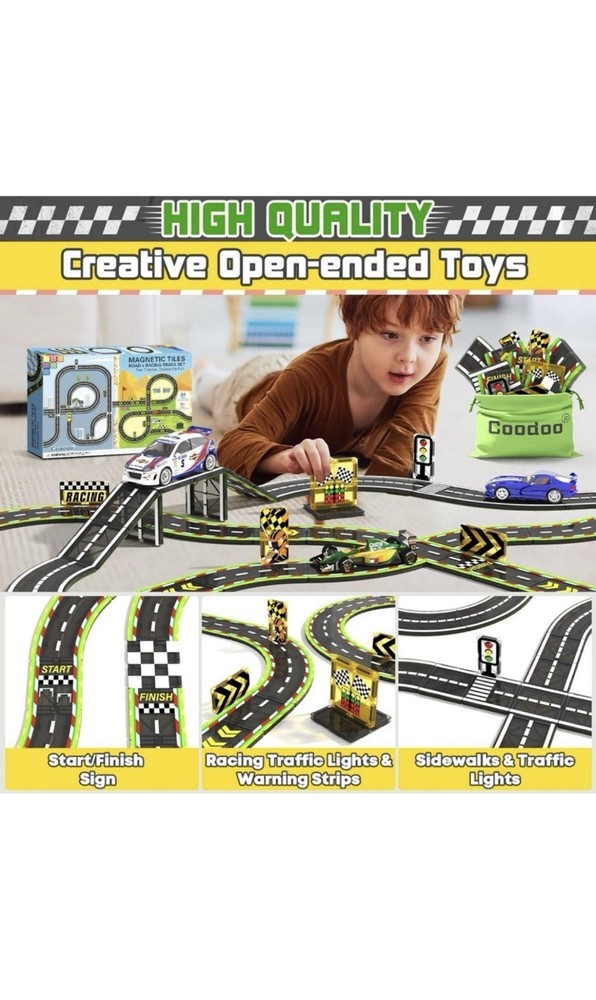 This product is a Magnetic Tiles Racing Track and City Road Expansion Pack by Coodoo. It is a STEM toy designed for kids, featuring magnetic tiles that can be used to build racing tracks and city roads. It encourages creativity and imagination in children while also promoting learning in the fields of science, technology, engineering, and mathematics (STEM). Magnetic Tiles Racing Track & City Road Expansion Pack - Kids Toys STEM Learning Montessori Toys for Toddler Magnetic Blocks Building Toys for 3+ Year Old Boys & Girls, Sensory Play Kids Toys
