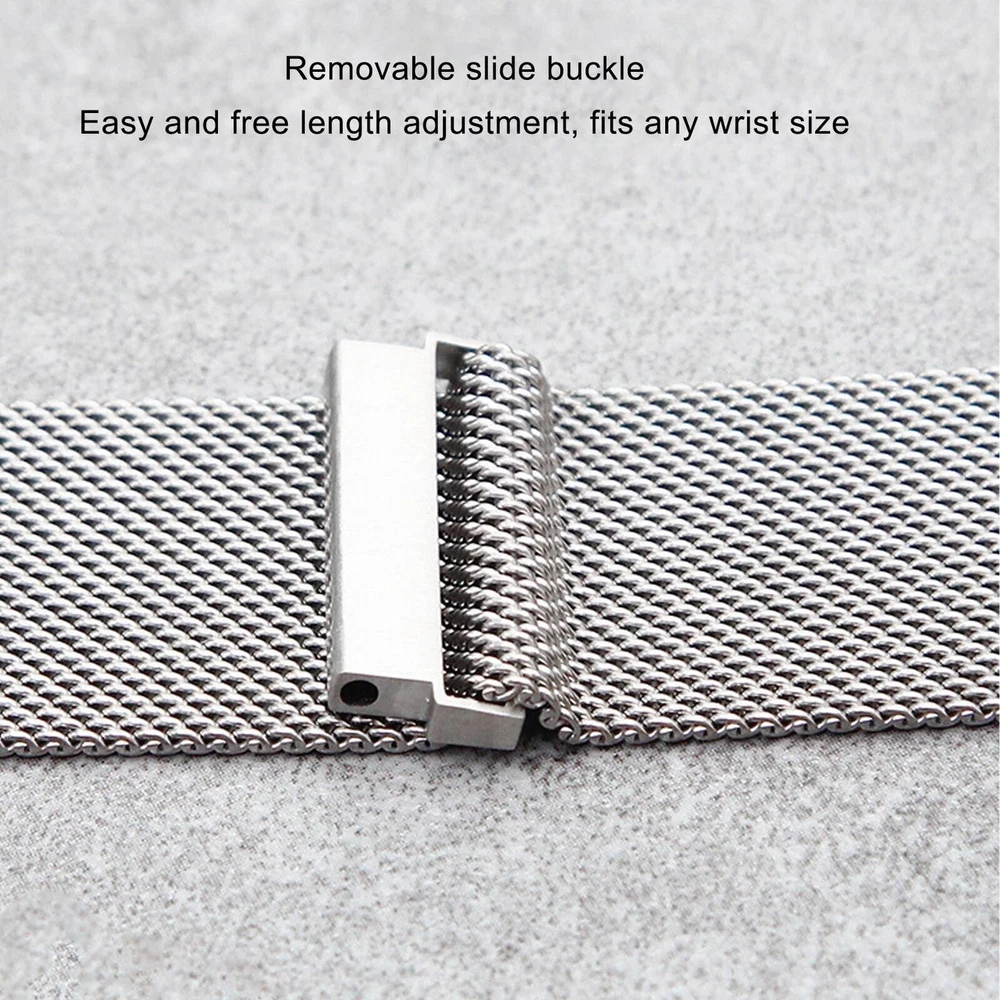 Feature: 1. Application: Magnetic watch strap, 20mm raised head, is suitable for Huawei GT2 watch, giving you a better wearing experience. 2. Magnetic Closure Buckle Design: The strap is built with a unique powerful magnet, which makes the locking buckle with strong adhesion. 3. Adjustable Size: The watch band is designed with a removable slide buckle, easily and freely adjusting the length to fit any wrist size. 4. Stainless Steel: Watchband is made of stainless steel, breathable, skin friendly, durable, comfortable to wear, suitable for both men and women. 5. Applicable Occasions: Magnetic watch strap is suitable for a variety of occasions, such as sports, leisure, daily, party, business occasions, etc. Specification: Item Type: Wrist Band Material: Stainless steel Application: Suitable for Huawei GT2 watch Package List: 1 x Watch Band 2 x Quick Release Lugs