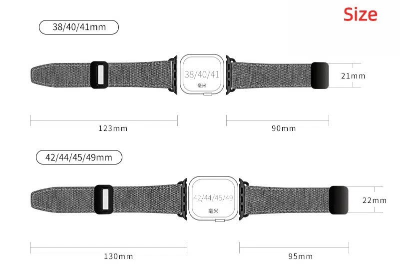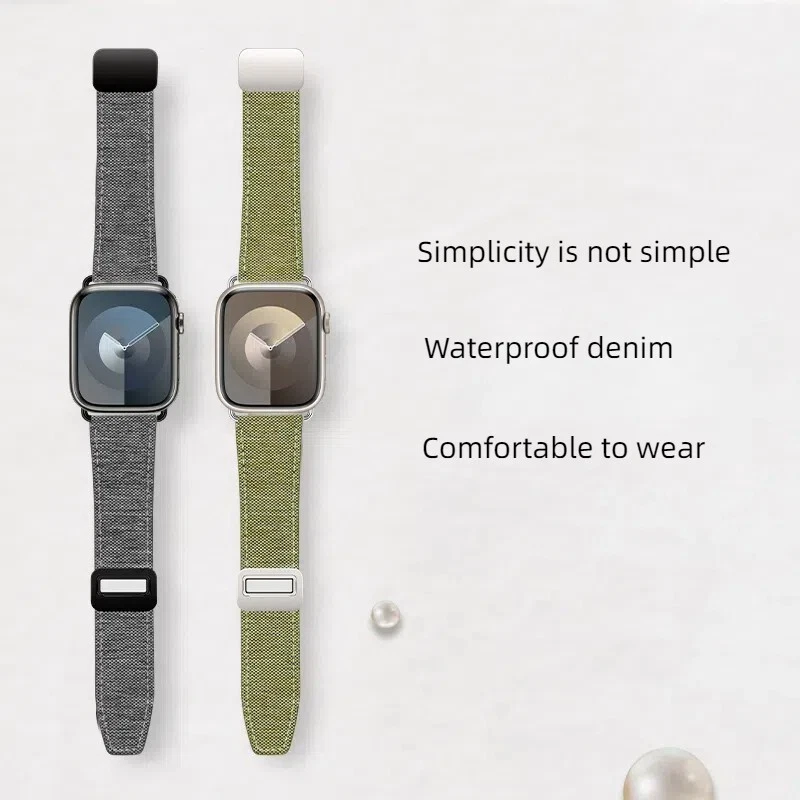 Magnetic Waterproof Denim Strap Apple Watch 10 9 8 7 6 5 SE 40/41/44/45/46/49mm Features: ● 100% brand new high quality. ● Denim fine woven strap, full comfort fit on the wrist, you can wear this strap all day long, complete comfort. Water-resistant and easy to care for, simply wipe this band with a damp cloth to keep your Apple Watch band brand new. ● The clasp is set with a large magnetic magnet that attaches firmly to the bracelet and does not fall off, so that your Apple Watch can stay safe on your wrist, even in sports or wet conditions. Works with any series of Apple Watches, from the latest Series 10 to the earliest Series 1. ● Sleek and unique lines and slim profile give this Apple Watch band a unique look that is suitable for all occasions. Choose from one of the many appealing colors or one of our two color combinations. With so many colors to choose from, you can easily find a color that matches your favorite outfit. ● Quick and easy Put on or take off your Apple Watch in seconds. It can also be easily adjusted to the most comfortable position according to the size of the individual's wrist. Compatible With: > For Apple Watch Ultra / Ultra 2 >For Apple Watch Series 10 / Series 9 / Series 8 / Series 7 / Series 6 / Series 5 / Series 4 / Series 3 / Series 2 / Series 1 / > For Apple Watch Nike > For Apple Watch Hermes > For Apple Watch SE Package includes: 1x magnetic denim strap ONLY !!! ( PS: The Apple Watch is Not Included )