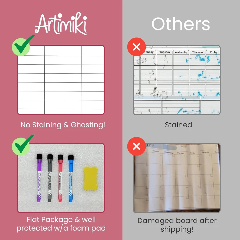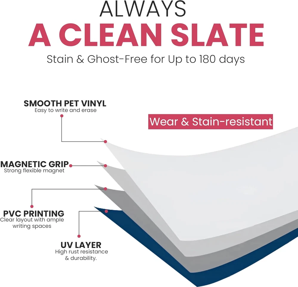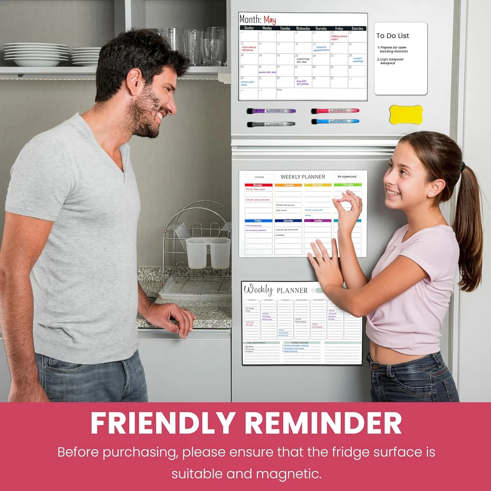 Store New Arrivals Add to Favorite View Feedback Contact Fast deliveries to the customer's home Quality customer service John Make the customers happy! Magnetic Weekly Planner 17 X 12 Inches with Fine Grid – Magnetic Calendar for Fridge with 4 Magnetic Markers, 1 Eraser and 1 Small Dry Erase Board – Perfect Organization for Everyone Description PREMIUM MAGNETIC PLANNER : This 17 x 12" magnetic weekly planner is made with durable PET. The high-quality dry erase calendar makes writing and erasing a breeze, ensuring a clean and organized planner every time. The surface is resistant to stains and ghosting for up to 180 days. Before purchasing it, please test if your metal surface can hold a magnet to ensure it's compatible. PROTECTIVE PACKAGING & MAGNETIC ACCESSORIES : Everything is magnetic. The package includes 1 planner, 1 blank memo board, 4 fine-tip markers, and 1 dry eraser. Each set is perfectly wrapped with a foam pad to protect all accessories and the planner, preventing damage during shipping. MASTER YOUR WEEK : Thoughtfully designed to help you manage your weekly schedule so you don't miss important dates and events. Stay organized, find more personal time for your favorite activities, and enjoy precious time with family! PERFECT FOR SCHOOL AND WORKSPACE : This organizer planner has various uses. It helps everyone plan school schedules, outdoor activities, and more. It is ideal for use on the fridge, at home, at school, or in the office. GREAT FOR FAMILY COMMUNICATION : This weekly planner is a great communication board for family members. Family members can share their schedules and organize to-dos, workout lists, meal plans, and grocery lists. It also helps children be organized and responsible for important dates and events. Product Description Fine Grid Layout Helps everyone plan weekly schedules, outdoor activities, to-dos. Large Grid Layout Helps everyone organize to-dos, workout lists, meal plans, and grocery lists. Undated Boxes Helps everyone manage monthly schedules, bill tracking, appointments. Won't forget important dates. 1 Dry Erase Weekly Calendar 2 Dry Erase Weekly Calendar 3 Dry Erase Monthly Planner Magnetic Dry Erase Calendar Add to Cart Add to Cart Add to Cart Add to Cart Price $23.79 $ 23 . 79 $23.79 $ 23 . 79 $23.79 $ 23 . 79 $23.79 $ 23 . 79 Size 17 x 12" 17 x 12" 17 x 12" 17 x 12" Style Fine Grid Fine Grid Large Grid Undated boxes Reusable ✔ ✔ ✔ ✔ Magnetic Dry Eraser ✔ ✔ ✔ ✔ Magnetic 4 Markers ✔ ✔ ✔ ✔ Extra Small White board ✔ ✔ ✔ ✔ Style fine-grid weekly planner Calendar Type Weekly Format Organizer Color black Material Type Polyethylene Terephthalate Product Dimensions 17"L x 12"W Material Polyethylene Terephthalate Binding Organizer Target Audience Kid, Teacher, Adult, Student, Teen Item Dimensions L x W x Thickness 17"L x 12"W x 0.65"Th Recommended Uses For Product Organization, Planning, School and Work Activities, Family Communication Additional Features Magnetic Surface, Dry Erase, Lightweight, Stain Resistant Special Feature Magnetic Surface, Dry Erase, Lightweight, Stain Resistant Cover Material Vinyl Item Dimensions L x W 17"L x 12"W ABOUT US We offer the best prices around on high quality products. Our E-store includes media such as books, movies, music and games while offering electronics, toys, sporting apparel, clothing, tools, general home, garden items and more. SHIPPING We are always working hard to ensure your package arrives as soon as possible. Please understand that some factors like weather, high postal traffic, and the performance of shipping companies are outside of our control. We offer free shipping to the lower 48 states and ship within 2 business days of payment, usually sooner. We do not accept P.O. Boxes. Please provide a physical address. For shipping outside of the continental USA, we only use eBay's Global Shipping Program. The item is shipped to KY and then sent to the rest of the world. International customers are responsible for all duties and taxes. Continue to 'check out' to calculate costs for shipping the item to your country. Messages regarding eBay's Global Shipping Program MUST be directed at eBay EXCLUSIVELY. RETURNS We offer a 30-Day Return Policy on items in which you are not completely satisfied with. You have the option of a full-refund or an exchange of the item. No returns are available on items shipped outside of the USA PAYMENT We accept PayPal. CONTACT US This page content is yet to come Please ad us to your favorite seller and visit again later Thank You CUSTOMER SATISFACTION We try our very best to make sure every customer is completely satisfied. If there's a problem, message us! We're happy to help. WE ACCEPT