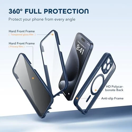 Return Policy Fast Delivery Trusted seller Magnetic for iPhone 15 Pro Max Case, [Dustproof Design] Compatible with MagSafe, Built-in 9H Tempered Glass Screen Protector + Privacy Screen Protector & Upgraded Camera Protection, Dark Blue Product Description [Superior Magnetic Attraction] for iPhone 15 Pro Max magnetic case is equipped with powerful magnets, perfectly compatible with magsafe charging at any angle, lightning fast and safe. Moreover, this case is seamlessly compatible with variety of magnetic accessories, including magnetic power banks, magnetic car mounts, magnetic wallets, and more, providing superior wireless charging compatibility and user convenience than before. [2 Pack Screen Protectors & Upgraded Camera Protection] This phone case comes with 9H HD tempered glass screen protector and privacy screen protector to protect your phone screen and personal privacy anytime, anyw. The built-in front cover provides excellent protection for the phone, maintaining the original screen sensitivity while preventing damage caused by scratches and impacts. Full coverage camera area to enhance protection and ensure worry-free photo and video quality. [Upgraded Dustproof Design] The side volume port and bottom charging port of this 15 Pro Max protective case are equipped with newly upgraded dust-proof covers to effectively prevent dust and debris from entering. The speaker hole also come with dust meshes to keep your phone clean at all times while ensuring clear and uninterrupted audio. [360°Full-Body Protection] The 15 Pro Max case features a dual-layer design with reinforced front and back covers, providing complete 360-degree full-body protection. The soft TPU shock absorption material protects your phone from accidental drops and falls. [Perfect Compatibility] Ensuring that every customer enjoys a satisfying shopping experience is the mission of . Please note that this phone case is Compatible with ✅iPhone 15 Pro Max 6.7 inches ONLY. (❌Not compatible with 15/15 Plus/15 Pro). If you have any questions about this 15 Pro Max magnetic protective case, please contact us. Our dedicated customer service team will provide you with a satisfactory response! Shipping Returns Payment Shipping Shipping is FREE to all addresses other than APO/PO boxes in the lower 48 states. All our stock ships from US-based warehouses. Shipped via USPS or UPS (depending on location and package weight) Unless stated otherwise, all orders will ship within 24-72 hours of your payment being processed. Check our feedback to see the great reviews of FAST shipping we offer. Returns Seller does not accept returns Payment We currently accept payment via eBay managed payments only. Once payment is cleared, we will dispatch your shipment within 1-3 business days. Please refer to the "Shipping" tab for more information regarding shipping speed to your destination.