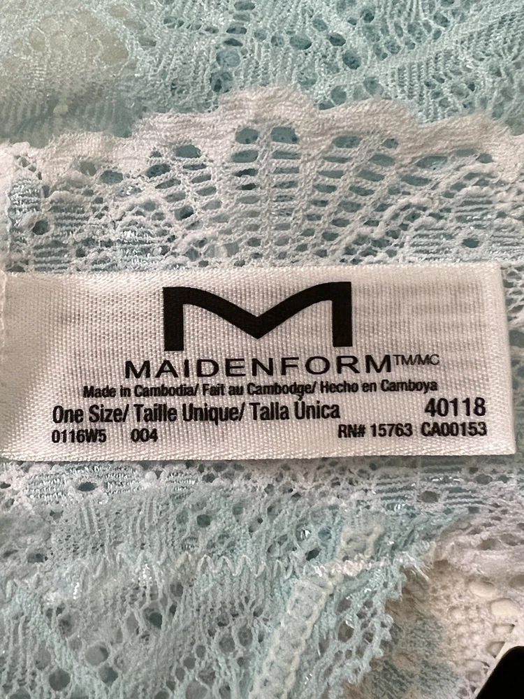 Vintage:NoFabric Type:LaceCountry/Region of Manufacture:CambodiaTheme:CuteRise:N/ASize Type:RegularAccents:N/ASize:One SizeCharacter:BlueStyle:Thong/StringMaterial:NylonColor:WhiteCompression Area:ButtocksNumber in Pack:N/APattern:N/ADepartment:WomenType:PantiesBrand:MaidenformFeatures:Lightweight