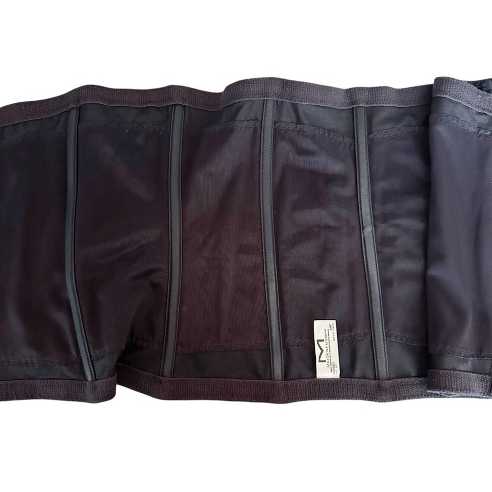Maidenform Jaquard Waist Nipper Ultra Firm Cincher Can be worn inside or outside of clothing Hook & Eye Closure Flexible boning Dark Navy Blue Color Size: XL Excellent pre owned condition, no flaws, see photos