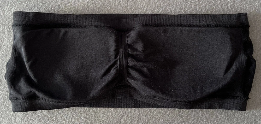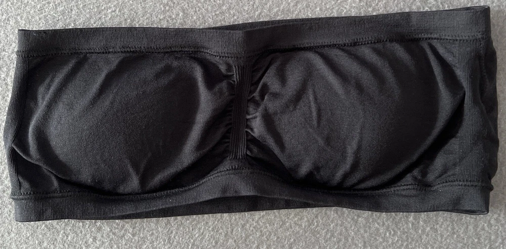 Department: Women Closure: Pullover Color: Black Accents: Strapless Material: Nylon, Spandex UPC: Does not apply Type: Bra Style: Full Coverage Bras Vintage: No Size Type: Regular Band Size: 2XL Fabric Type: Blended Fabric Brand: Maidenform Theme: Classic, Sports Product Line: Maidenform Underwire Type: Wireless Garment Care: Machine Washable Opacity: Opaque Pattern: Solid Personalize: No gtin13: Does not apply Strap Type: Strapless Seller Notes: “New excellent condition” Size: XXL Country/Region of Manufacture: Unknown Features: Padded Cup Size: 2XL