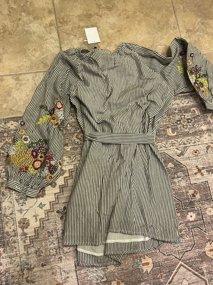 Pin striped dress Ladies Large Embroidered sleeves Free shipping