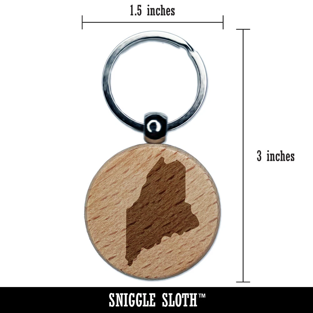 Maine State Silhouette Engraved Wood Round Keychain Tag Charm
