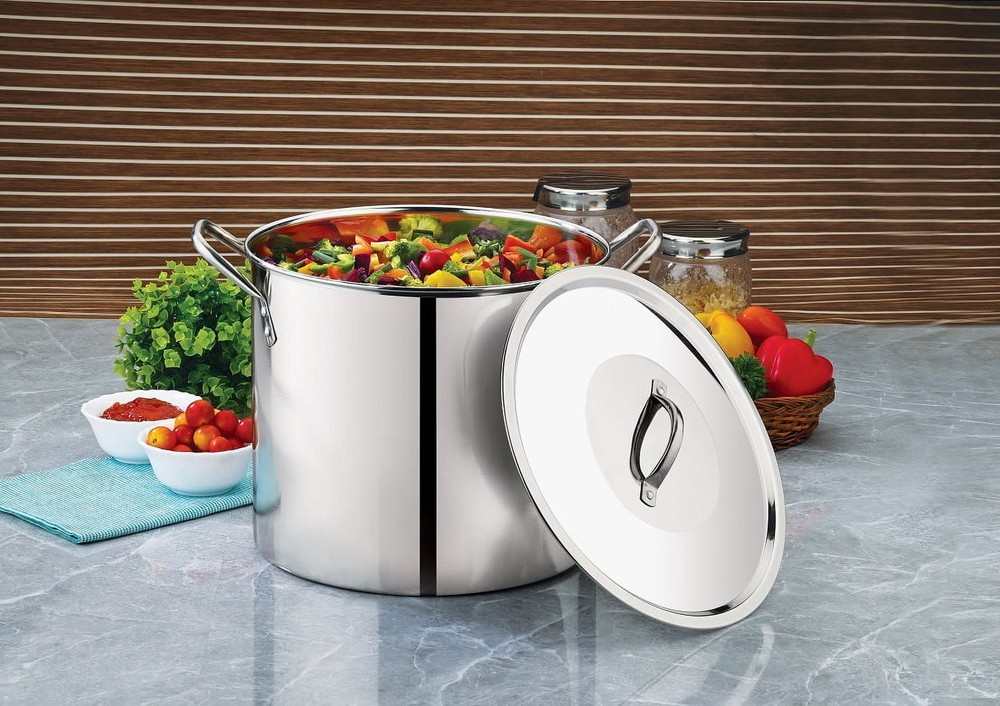 Mainstays 12-Qt Stainless Steel Stock Pot with Metal Lid - This Mainstays stainless steel stock pot gives you food safety, and is easy to use. Plus, it's riveted for extra strength and long life. The stay-cool handles make it easy to pick it up from the stove without the need for potholders. This Mainstays stock pot is designed to hold up to 4 gallons of stocks, stews and more. It is available in your choice of assorted sizes to meet your needs. Mainstays 12 Quart Stainless Steel Stock Pot, Silver 12 Quart capacity (11.4 L) is ideal for preparing pasta sauce, soup, and more Constructed from ultra-durable stainless steel for long-lasting cookware Designed with stay-cool handles to prevent burns; handles are riveted for added security Perfect for busy kitchens, suitable for boiling or preparing large meals Hand wash only to maintain the pot's appearance and durability