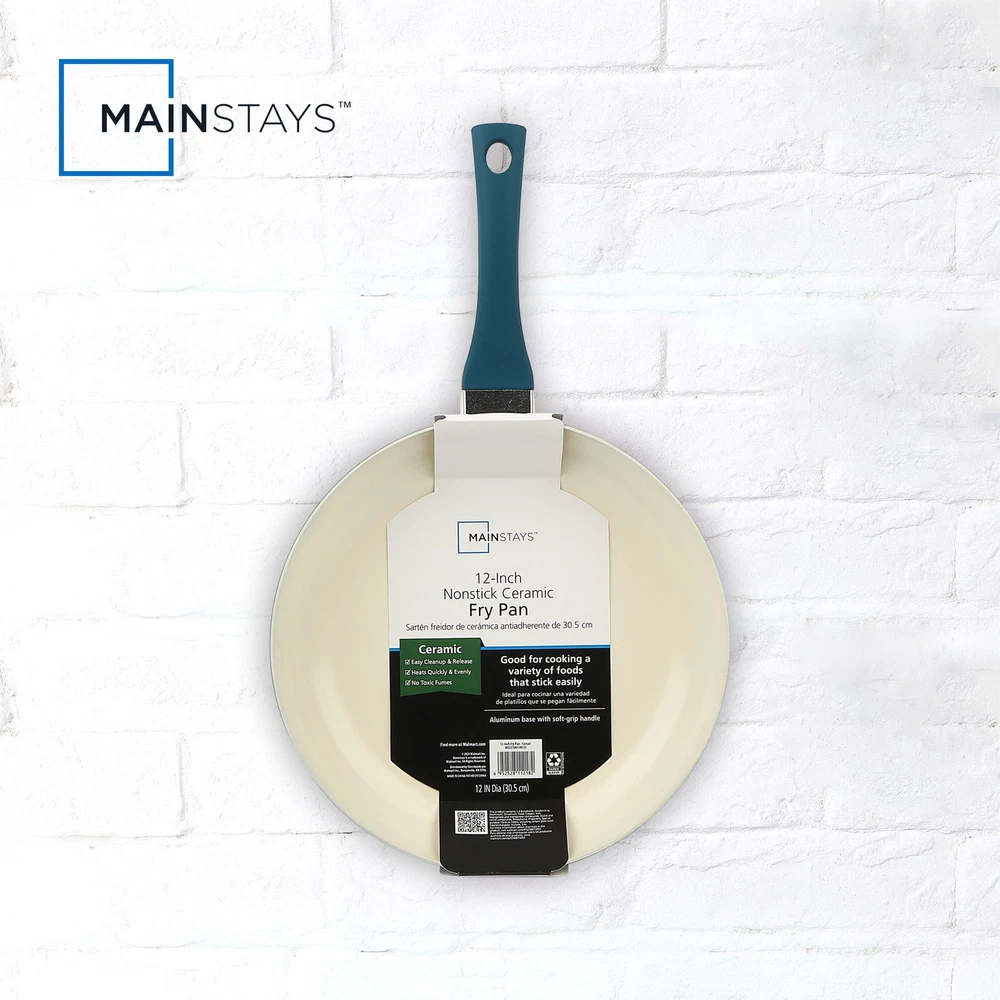 Update your kitchen essentials with the Mainstays Ceramic Aluminum 12in Frypan Corsair.This 12in aluminum frypan is ideal for everyday cooking at home. Easy clean up. Aluminum body distributes heat more fast and even, it will help you save time cooking as well. The interior is coated with 2 layers of PPG Customized ceramic coating, which is healthy and makes cooking and clean-up easy. Handle is strongly connected by rivets. It is suitable for all cooktops except induction. The outside color of this frypan will offer a bright pop of color to your kitchen. Mainstays 12" Ceramic Aluminum Nonstick Frypan Aluminum body for fast and even heating Riveted handle for strong connection Suitable for all cooktops except induction Mainstays Ceramic Aluminum Nonstick 12in Frypan Corsair Dishwasher safe