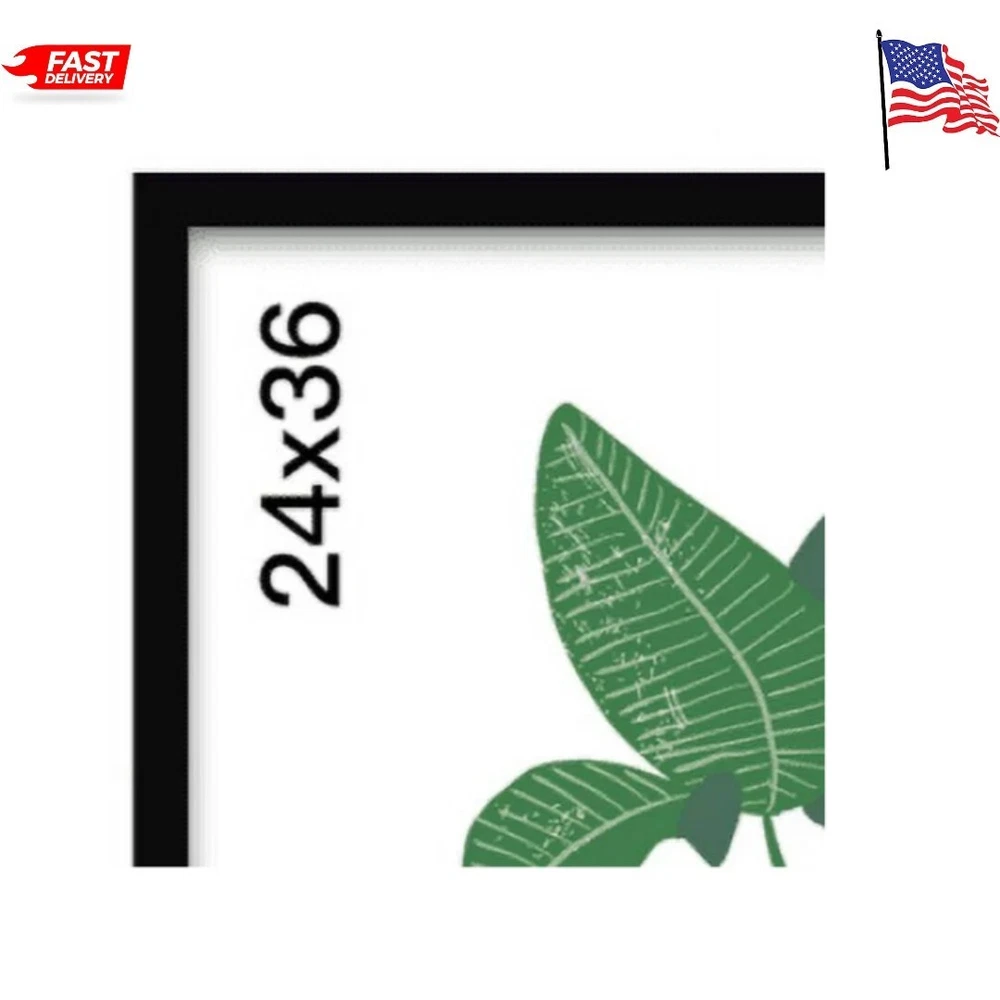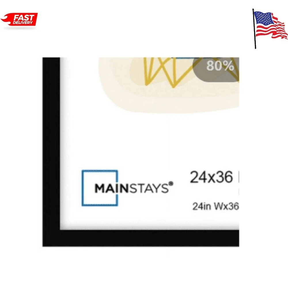 About this item Product details Accent your space with a favorite inspirational image or art piece using the Mainstays 24" x 36" Basic Black Poster Frame. It has a four-piece design that features a lightweight construction with a sturdy plastic front. This black Mainstays poster frame can be mounted to hang either vertically or horizontally. It flaunts a sleek and simplistic design that works well in both home and office settings. This lightweight poster frame is easy to use and can accommodate photo enlargements and other sheets that measure up to 18" x 24". It also has a durable plastic glazing to view artwork more clearly through the frame. Mainstays 24" x 36" Plastic Picture Frames, Black: Designed for posters, art prints and photo enlargements Made with polystyrene plastic Features 24" x 36" poster frame opening The Mainstays poster frame is suitable for vertical or horizontal wall displays Economical and lightweight Display portraits, panoramic photos, paintings and more Sleek black design Includes a hard backing to keep images flat during hanging Easy-to-use 4-piece frame Suitable for home, office and business use error: Specifications Assembled Product Weight 15 lb Brand Mainstays Size 24 x 36 Actual Color: Black