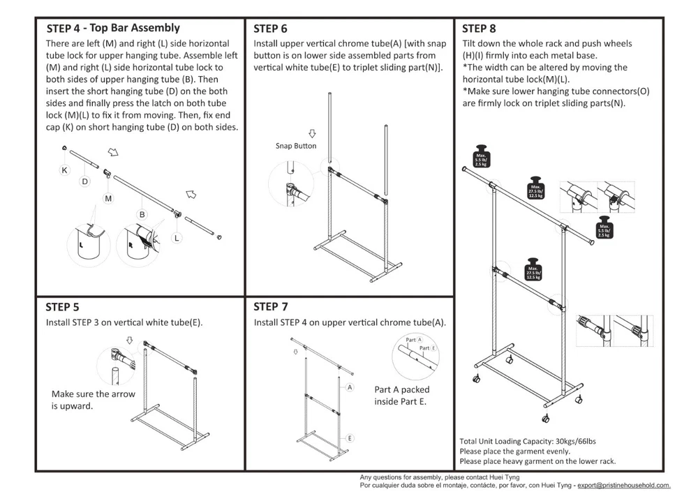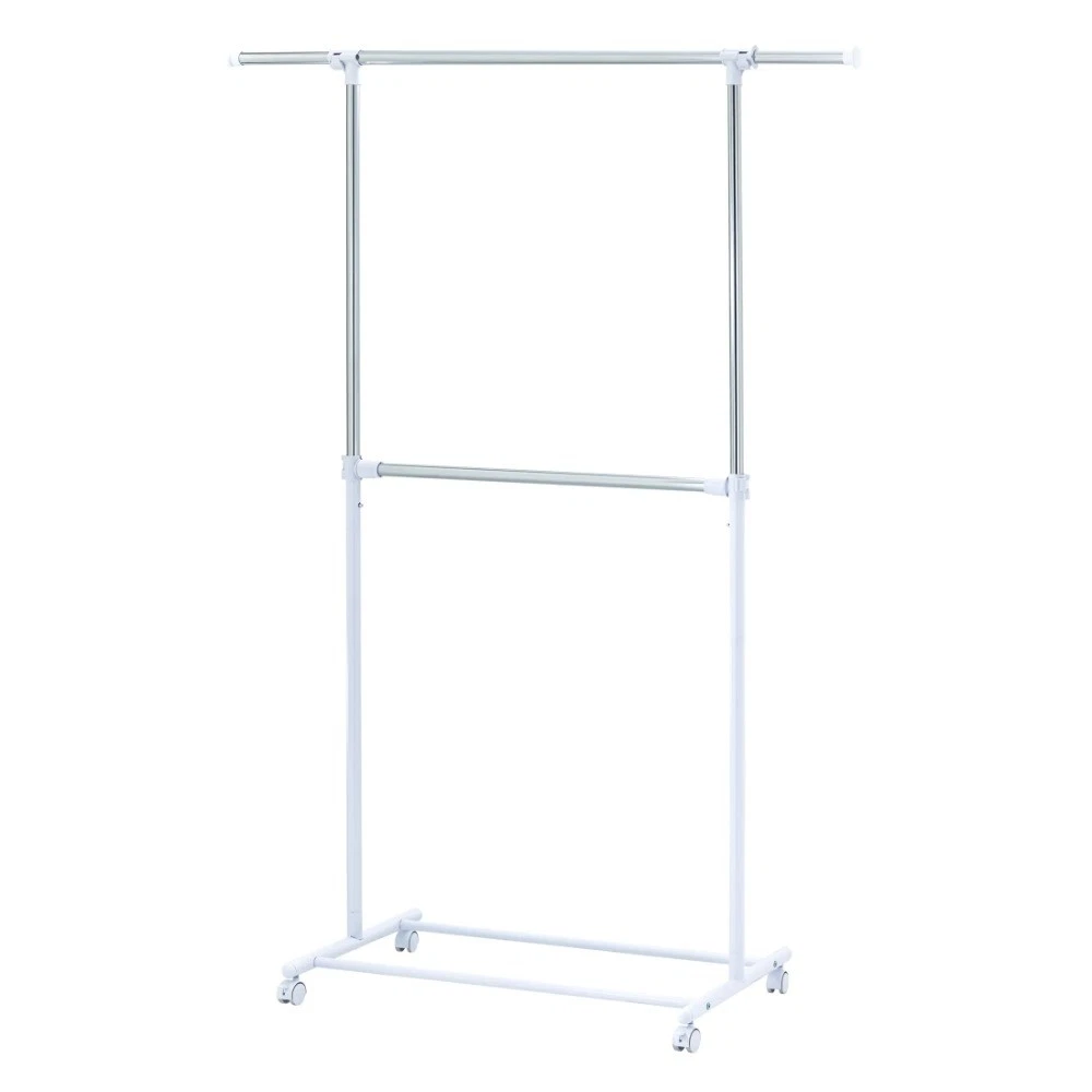 Get organized around the house with this durable and classic adjustable 2-tier garment rack. With this product, you can hang your clothes with confidence. The innovative space-saving design maximizes your unused space. Wide range of applications and it can apply for short garments, such as pants, shirts and skirts. Double layer design, large enough to hang many kinds of clothes. Smooth-rolling wheels for easy mobility, and the height can be adjustable. Strong metal base for better loading and stability. The bottom layer is great places for putting shoes, boots, storage box and many other things. Space-saving, stable, sturdy and durable, you can rest assured you are getting authentic Mainstays product. Assembled Product Size: 37.4-61.02W x 18.5D x 72.05H inch/ 95-155W x 47D x 183H cm. Assembled Product Weight: 2.84kgs/6.25lbs. Mainstays Adjustable 2-Tier Rolling Garment Rack Perfect storage solution for homes without built-in closets 2 tiers of hanging rods are ideal for business shirts, blouses, skirts, slacks, dresses, jackets and more Assembled Product Size: 37.4-61.02W x 18.5D x 72.05H inch/ 95-155W x 47D x 183H cm Assembled Product Weight: 2.84kgs/6.25lbs Built-in casters make it easy to move the garment rack from room to room Outer order and organization helps you to feel a sense of inner calm This unit is intended for use only with the products and maximum weights indicated. Maximum Safe Load: 66 LBS(30 KGS);use with other products or products heavier than the maximum weights indicated may result in instability causing possible injury User-friendly and strong metal base design makes for easy assembly