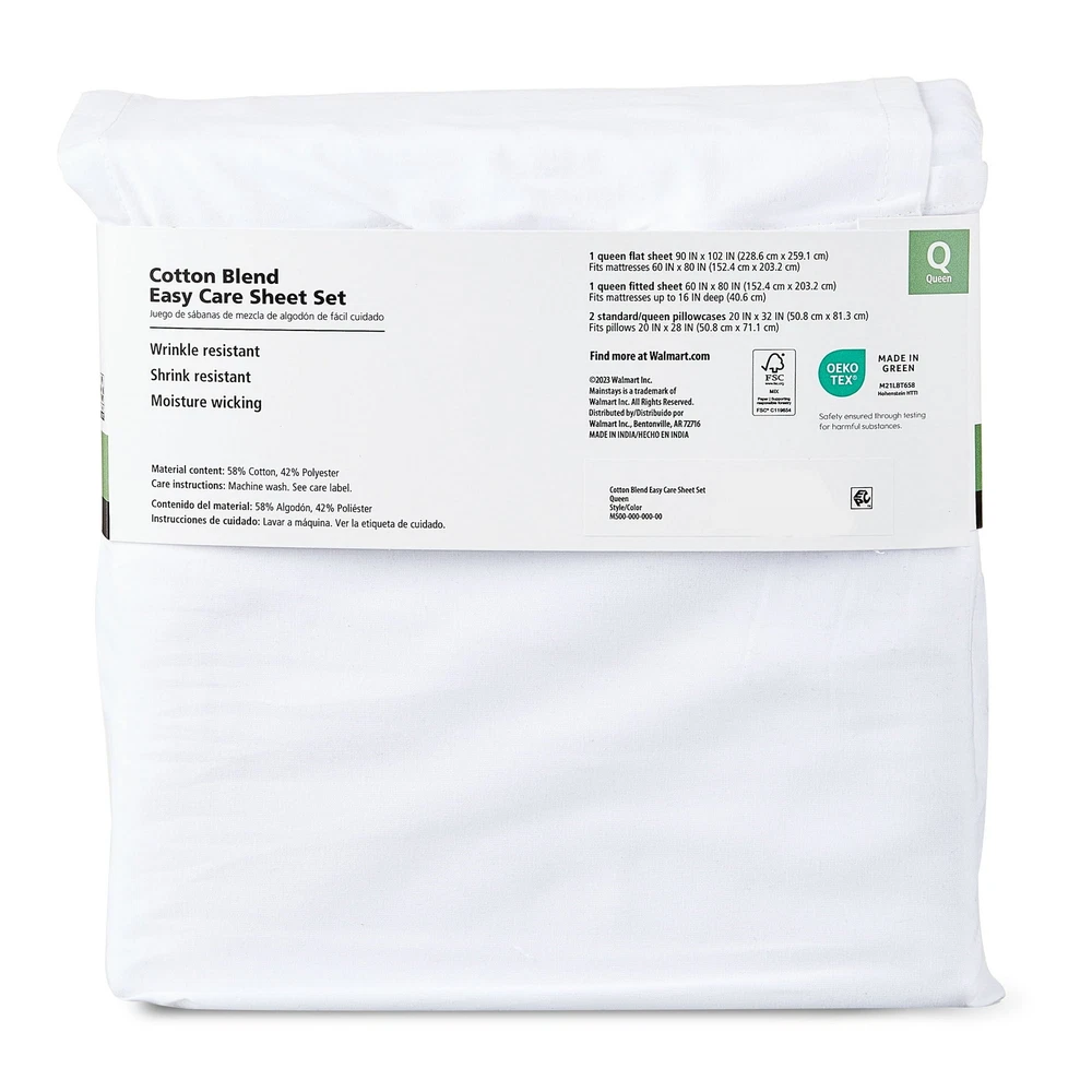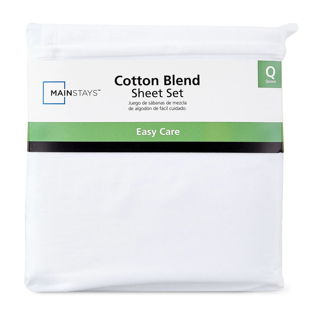 Room: Bedroom Color: White gtin13: 914129825171 Brand: Mainstays Type: Sheet Set Material: Cotton UPC: 914129825171 Size: Queen