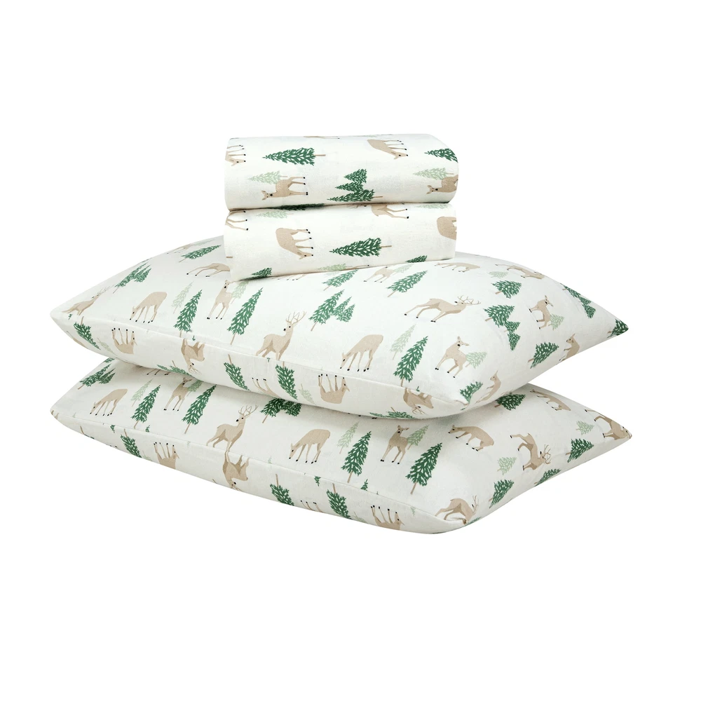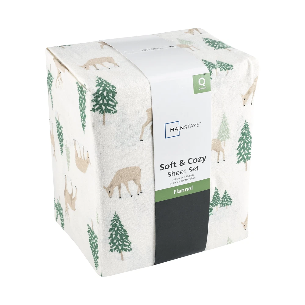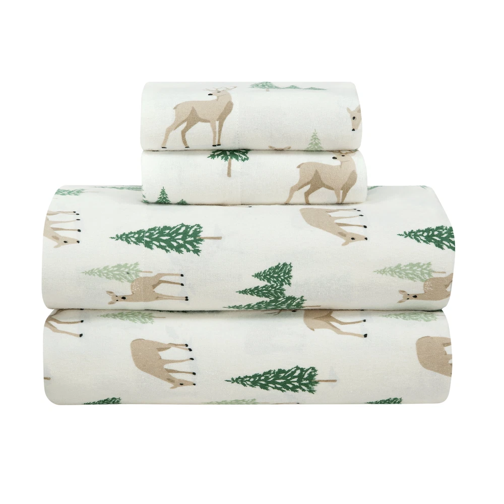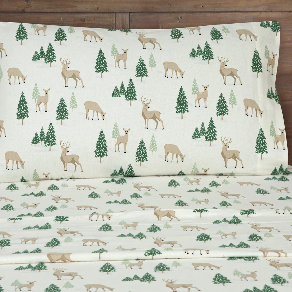 HomeMainstays 4-Piece Peace Full Deer Flannel Adult Sheet Set, King