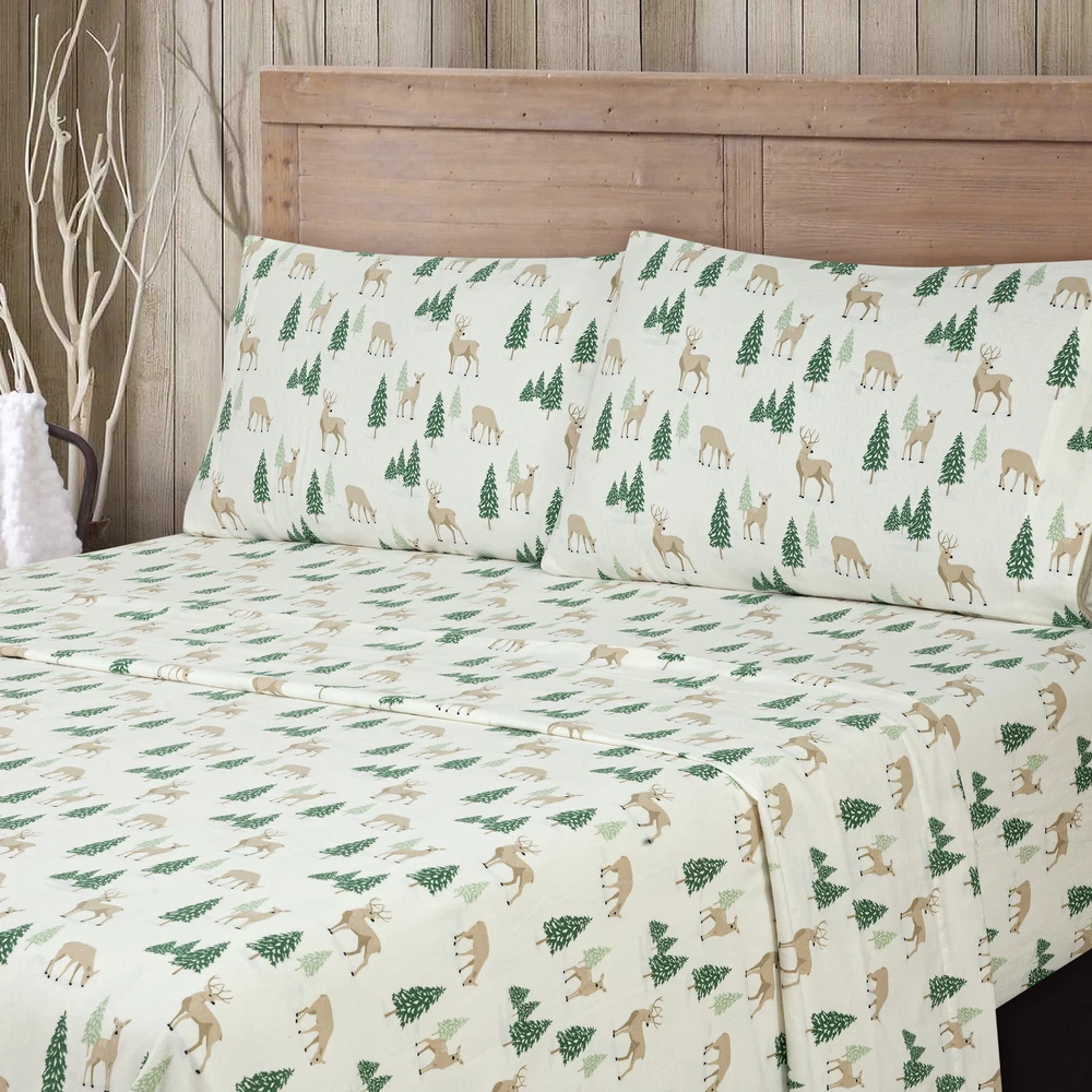Mainstays 4-Piece Peace Full Deer Flannel Adult Sheet Set, King