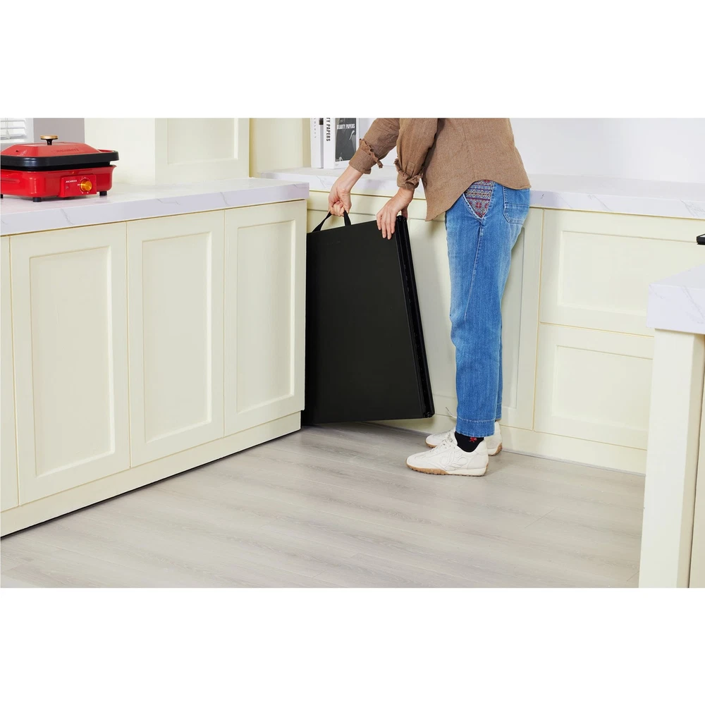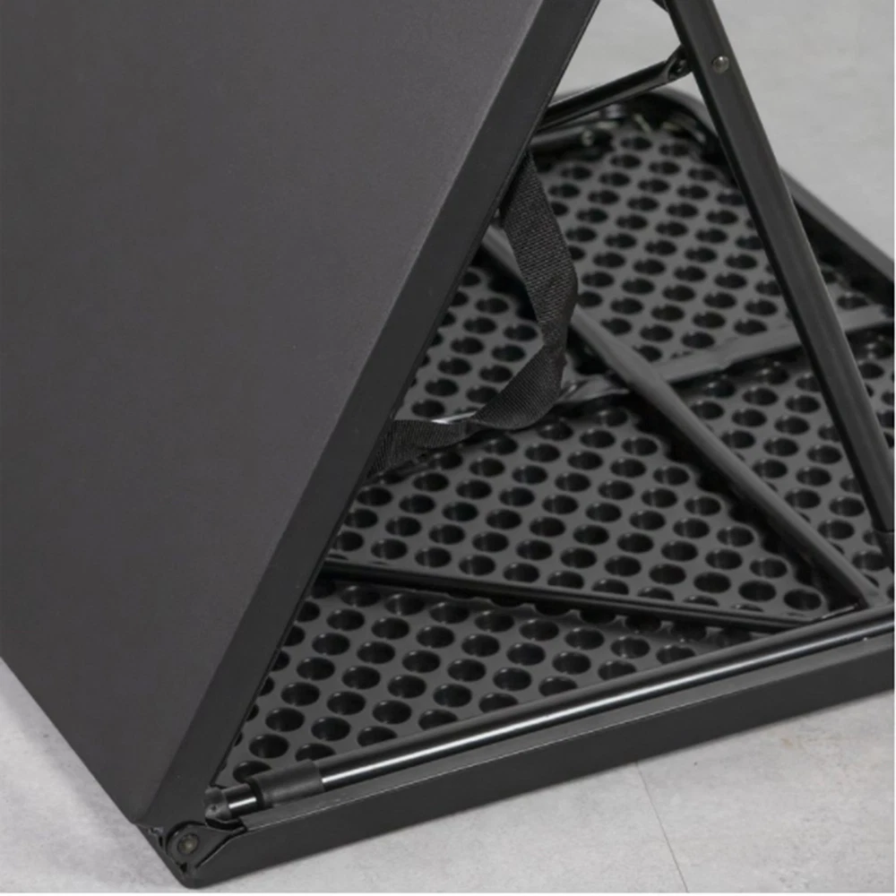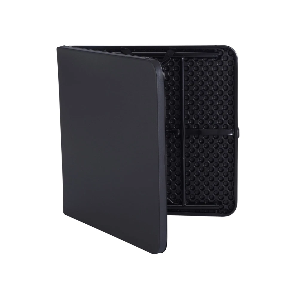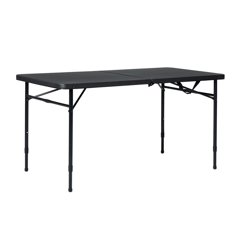 Provide all of the table spaces that you need in all kinds of settings with the Mainstays 4' Fold-in-Half Adjustable Table in Rich Black. This versatile rectangular table is sturdy and durable, made with reliable materials, and folds for easy storage and transportation. When you're finished using it, just fold in the metal legs, fold the table in half, and your new compact table is ready for transport! Its classic black color is sure to fit in at any gathering in any setting, and its spacious expanded 48" long table-top is ideal for holding a wide variety of foods, crafts, or whatever items you are working with! It's great for everyday use both indoor and outdoor, as a serving table, craft supply table, outdoor meal table, or for whatever purposes you may need. The plastic tabletop is easy to clean with no fuss just wipe it down with a damp cloth, and it will look as good as new! The carrying handle makes it perfect for taking on the go, for outdoor barbecues, game nights, school activities, parties, or tailgating events. The table comfortably seats 4 adults, so all of your friends and family can be included. Mainstays 4 Foot Fold-in-Half Adjustable Indoor Outdoor Table, Rich Black Product Dimension:48" W x 24" D x 21.14" - 24.4" - 28.03" H Comfortably seats 4 adults Easily folds in half for convenient storage Classic black color coordinates with almost any decor! Includes a built-in carry handle, for easy transportation Rubber stoppers on the legs for added grip on floor surfaces Appropriate for use indoors or outdoors Easy-to-clean resin surface Strong durable powder-coated metal construction Number Of Pieces: 1 x folding table