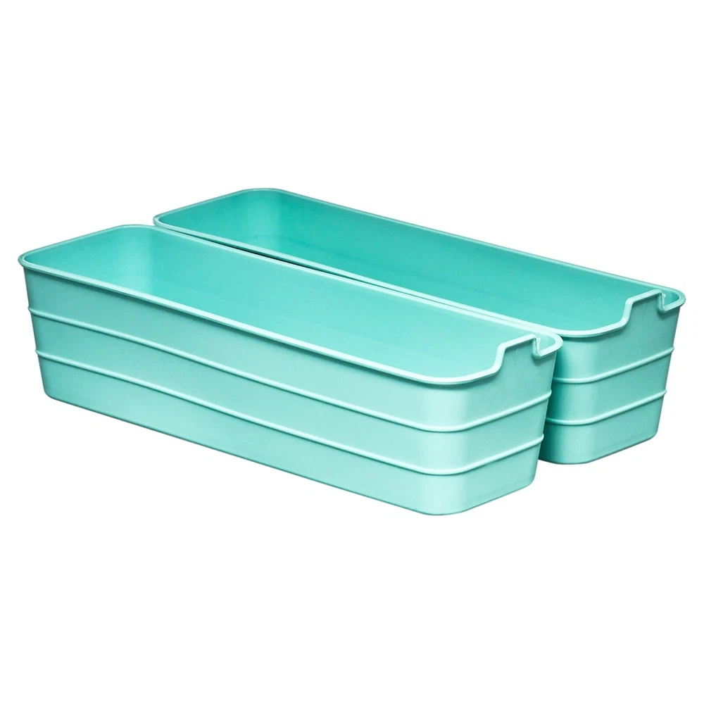 About this item Product details Perfect for storing all kinds of household items, this set of five Mainstays Flex Bins helps to keep your home more organized. With a solid wall design that keeps items securely contained, this set of five dishwasher-safe organizers are made of a flexible material to be perfectly sized for use individually or as a group that fits inside most standard sized drawers. These trays feature a lift tab for easy removal and are perfect for storing office supplies, kitchen items and small gadgets, tools and parts for repairs, scissors, spare change, and a variety other items almost anywhere. Each set includes two bins measuring 3.5 wide by 5.3 inches deep by 3 inches high, two bins measuring 3.5 inches wide by 10.6 inches deep by 3 inches high, and one bin measuring 7 inches wide by 10.6 inches deep by 3 inches high. Built for a long life of use in your home, keep everything tidy with this set of five Mainstays Flex Bins. Getting organized is often a matter of finding the right equipment to store your stuff. Mainstays organization and storage products are suitable for use throughout your home. Some of the products in this section are designed for use in a specific area, such as your closets or kitchen, and you can focus on these specific products if you know what you need. If you don't yet know what organization and storage products might solve your problems, scroll through the product listings in this section to get inspiration. Product descriptions and names are helpful guides to consider as you browse. Mainstays Flex Bins, Set of 5 Each set includes two bins measuring 3.5" W x 5.3" D X 3" H, two bins measuring 3.5" W x 10.6" D x 3" H, and one bin measuring 7" W x 10.6" D x 3" H A great system for organizing your home Crafted of a flexible material that creates the perfect fit anywhere Solid wall design keeps items securely contained Lift tabs make removing and transporting easy Dishwasher safe for easy care Perfect for storing office supplies like staples, paper clips, pens and more Makes a great kitchen accessory for toothpicks, cutlery, spare change, and small gadgets Can be used in workshops and garages for fasteners, small tools, and parts for repairs Total product weight: 0.93 lbs
