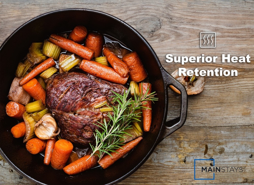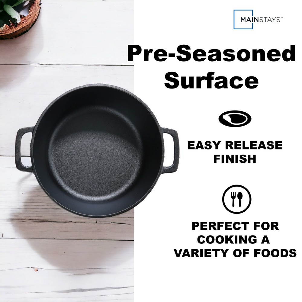 Product details Elevate your culinary game with the Mainstays 5qt Cast Pre-Seasoned Dutch Oven Black. This versatile and durable cookware is crafted from high-quality cast iron, known for its excellent heat retention and even heat distribution. Pre-seasoned for easy release and simple cleanup, this Dutch oven is oven-safe up to 400°F, allowing you to braise, bake, or roast with ease. The generous 5-quart capacity accommodates a variety of recipes, from hearty stews and soups to succulent roasts and fresh-baked bread, making it perfect for family meals or entertaining guests. With proper care and maintenance, this Mainstays Dutch oven will become a cherished kitchen companion for generations to come. Mainstays 5qt Oven-Safe Cast Iron Pre-Seasoned Dutch Oven Versatile Size: A 5-quart capacity that accommodates various recipes, from stews and soups to baking bread or roasting meats Superior Heat Retention: Exceptional heat retention and even heat distribution ensure your dishes cook evenly and efficiently Durable and Long-Lasting: with proper care, this cast iron Dutch oven can last for generations, making it a worthwhile investment Oven-Safe: Suitable for use on the stovetop and in the oven, allowing you to braise, bake, or roast with ease Attractive Design: Classic and rustic design makes it visually appealing for serving dishes straight from the oven to the table