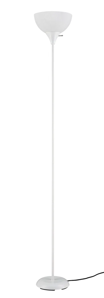 Brighten up any room with the Mainstays 71" JK1559WH floor lamp. Featuring a classic white finish on a durable metal pole set on a 9” sturdy base. A 3-way socket switch allows you to choose the perfect amount of light for any situation, whether you need to brighten the entire room for guests or curl up with a book. Uses a 150 watt incandescent light bulb or equivalent (not included). A white color lamp shade enhances the lamp’s minimal and classic allowing for just the right amount of ambient light. The sleek and modern design makes this lamp a perfect addition to any adult living room, bedroom, or home office and a must-have for young adult college living spaces. 71" JK1559WH in floor lamp White finish 3-Way switch 9 in base 150-Watt Bulb or LED equivalent (Not included) Ideal for living room, bedroom, adult office or college dorm Assembly required Modern Styling