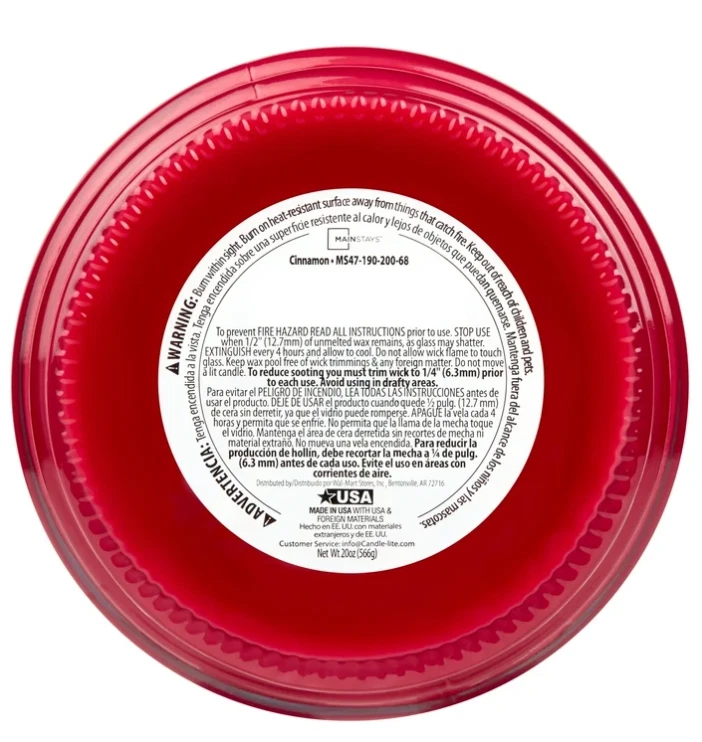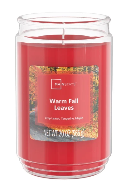 Mainstays Cinnamon Scented Single-Wick Large Glass Jar Candle 20 oz select scent About this item: Mainstays Cinnamon Scented Single-Wick Large Glass Jar Candle, 20 oz. Warm and spicy cinnamon infused with subtle nuances of clove and pure vanilla. Complements virtually any room decor 20 oz. single-wick candle burns for approximately 100-120 hours Features a decorative beveled edge glass vessel Mainstays single-wick scented candles are highly fragranced, and provide a clean and even burn that will fill your home with beautiful and enticing aromas Our candles are made from high quality, non-toxic, clean-burning wax that is specifically developed to hold optimal fragrance loads Our Mainstays 20oz candle is available in a variety of scents Product detail: Introduce a soothing aroma into your living space with the Mainstays Cinnamon Scented Single-Wick Jar Candle. Mainstays scented candles are highly fragranced and provide a clean and even burn that will fill your home with beautiful and enticing seasonal aromas. Place this candle in the kitchen, living room or dining room where you can enjoy it when entertaining guests or anytime you want to relax. Trim the wick periodically to promote even burning. Mainstays offer a wide selection of candle scents to explore and enjoy. Shop all of our Mainstays scents online and in-store. Treat yourself to the enticing scent of the Mainstays Cinnamon Scented Single-Wick Jar Candle.