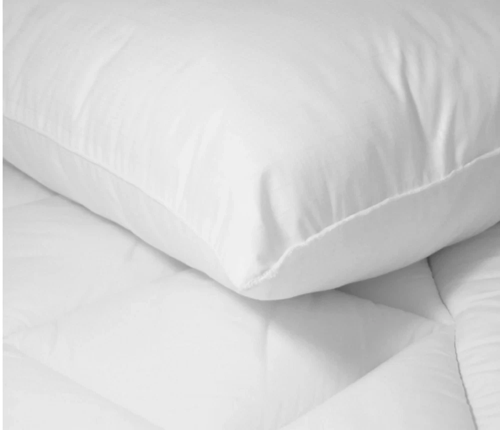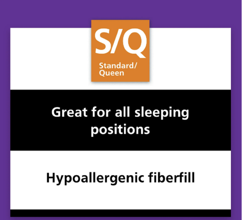 Mainstays Comfort Complete Bed Pillow, Standard/Queen (2 Pack) Description: Drift to sleep in complete comfort with the Mainstays Comfort Complete Pillow. The overfilled and supportive design of this pillow incorporates a fill that mimics the comfort and loft of down at a fraction of the price! The Mainstays Comfort Complete Pillow has antimicrobial properties and is hypoallergenic so you can rest and breathe easy. Moisture wicking technology helps to keep you cool all night long. With Standard/Queen dimensions of 20 by 28 inches, the Mainstays Comfort Complete fits into most Standard/Queen pillow cases or shams. The Mainstays Comfort Complete Pillow is machine washable for easy care and convenience. Give your bedroom an extra layer of comfort with Mainstays Comfort Complete Pillow. Standard/Queen Size Pillow (20x28 inches) Hypoallergenic Fill Antimicrobial properties More loft than other price comparable pillows Soft Microfiber Cover Moisture Wicking technology helps to keep you cool Machine Washable 3-year manufacturer's warranty