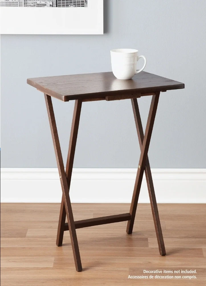 Indoor Single Folding TV Tray Table - Walnut 19L x 15W x 26H. A versatile table, the Indoor Single Folding TV Tray Table - Walnut weighs 3.54 kg, making it lightweight and easy to carry. The assembled table is 26 inches tall and weighs 3.54 kg. Dimensions: 19.09L x 14.57W x 25.98H - Material: Made of Rubberwood Weight: Weighing only 3.54 kg, this indoor table is lightweight and easy to carry, making it perfect for a variety of indoor settings and arrangements. Versatility: This folding tray table can be used as a side table in the living room, a tray for indoor gatherings, and can seamlessly adapt to your indoor lifestyle. Sturdy Construction: Despite its lightweight design, the rubberwood construction ensures stability, providing a reliable surface for indoor activities.