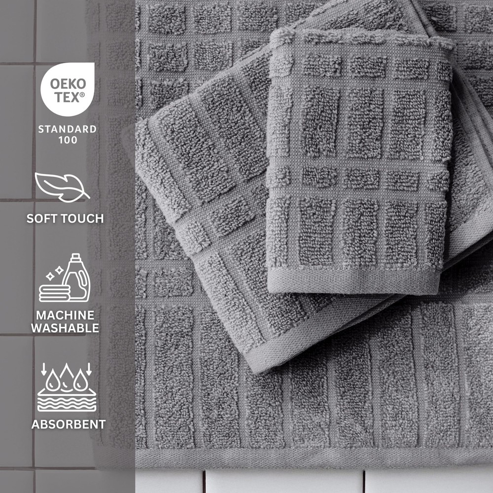 Upgrade your bathroom with the Mainstays Performance 6-Piece Bath Set, designed for everyday comfort and lasting durability. Crafted from 100% cotton, these towels offer a soft yet absorbent feel, perfect for drying off quickly after a shower. The set includes two generously sized bath towels (30" x 54"), two hand towels (16" x 26"), and two washcloths (12" x 12"), giving you everything you need for a refreshed bathroom setup. Featuring a unique all-over texture on one side and a smooth, solid reverse, these towels deliver both style and versatility. Plus, they’re Oeko-Tex Made in Green certified, ensuring they meet high environmental and safety standards. Whether you're stocking up for your home or upgrading your guest bathroom, this set offers the perfect blend of performance, quality, and value. About this item 6-piece set - Includes 2 bath towels, 2 hand towels, and 2 washcloths. 100% cotton - Soft, absorbent, and gentle on skin. Textured design - Stylish all-over texture on one side, smooth solid reverse. Everyday durability - Designed for long-lasting performance and repeated washing. Eco-friendly certification - Oeko-Tex Made in Green certified for sustainability and safety. Versatile & stylish - Perfect for home, guest bathrooms, or dorms. On Jul 17, 2025 at 01:51:00 PDT, seller added the following information: