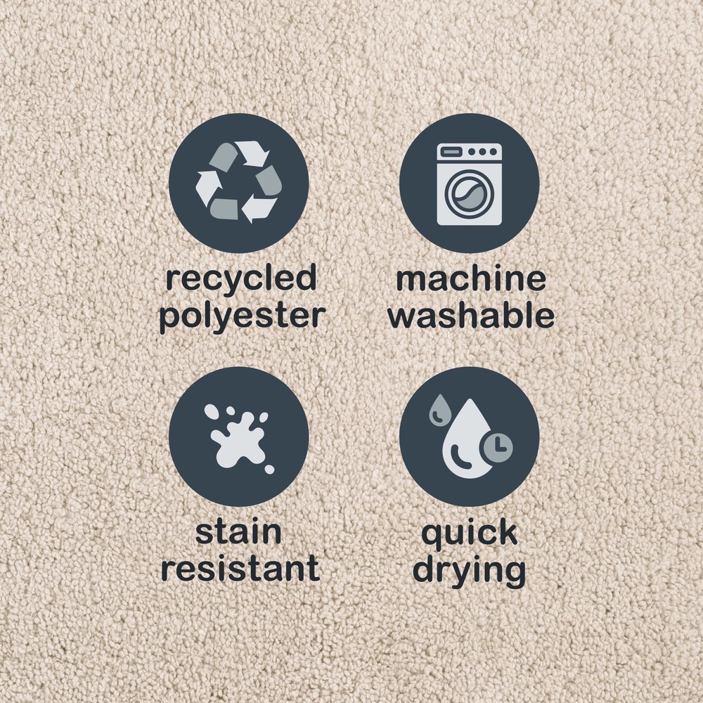 The Mainstays Basic Bath Rug is a functional addition to any bathroom, designed to provide both comfort and durability. Made from 100% polyester fibers, this rug features a soft, looped texture that feels luxurious underfoot, while also being tough enough to withstand the daily wear and tear of a bathroom setting. The rug measures 20" x 32", making it the perfect size for placement by the shower, tub, or sink and it is also backed with a skid-resistant material. It comes in a variety of solid colors, allowing you to choose one that fits your decor. A standout feature of this rug is the eco-friendly design, with 95% of the polyester being recycled. In addition to its comfort and practicality, it is machine washable and resistant to both stains and fading, ensuring it stays vibrant over time. Item: Mainstays Basic Rectangular Polyester Bath Rug Rug Size: 20" x 32" Material: 100% Polyester (95% is Recycled), 1400 GSM density Hand-feel: Ultra soft: Provides a plush, comfortable feel underfoot Durability: Stain and Fade resistant to help maintain vibrancy Safety: Skid resistant backing to help prevent slipping Buying Guide: OEKO-TEX Made in Green; High environmental standards Care: Machine wash warm, tumble dry low, do not dry clean