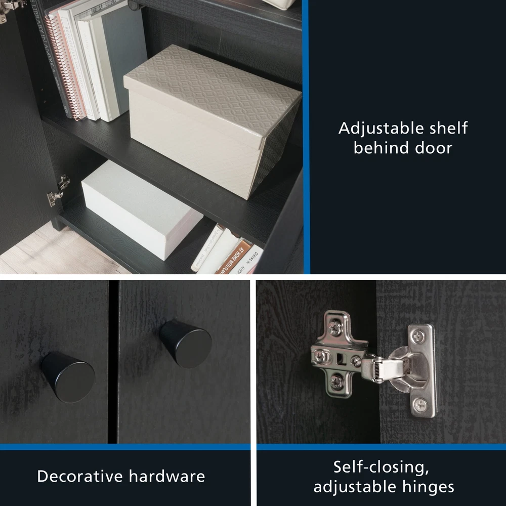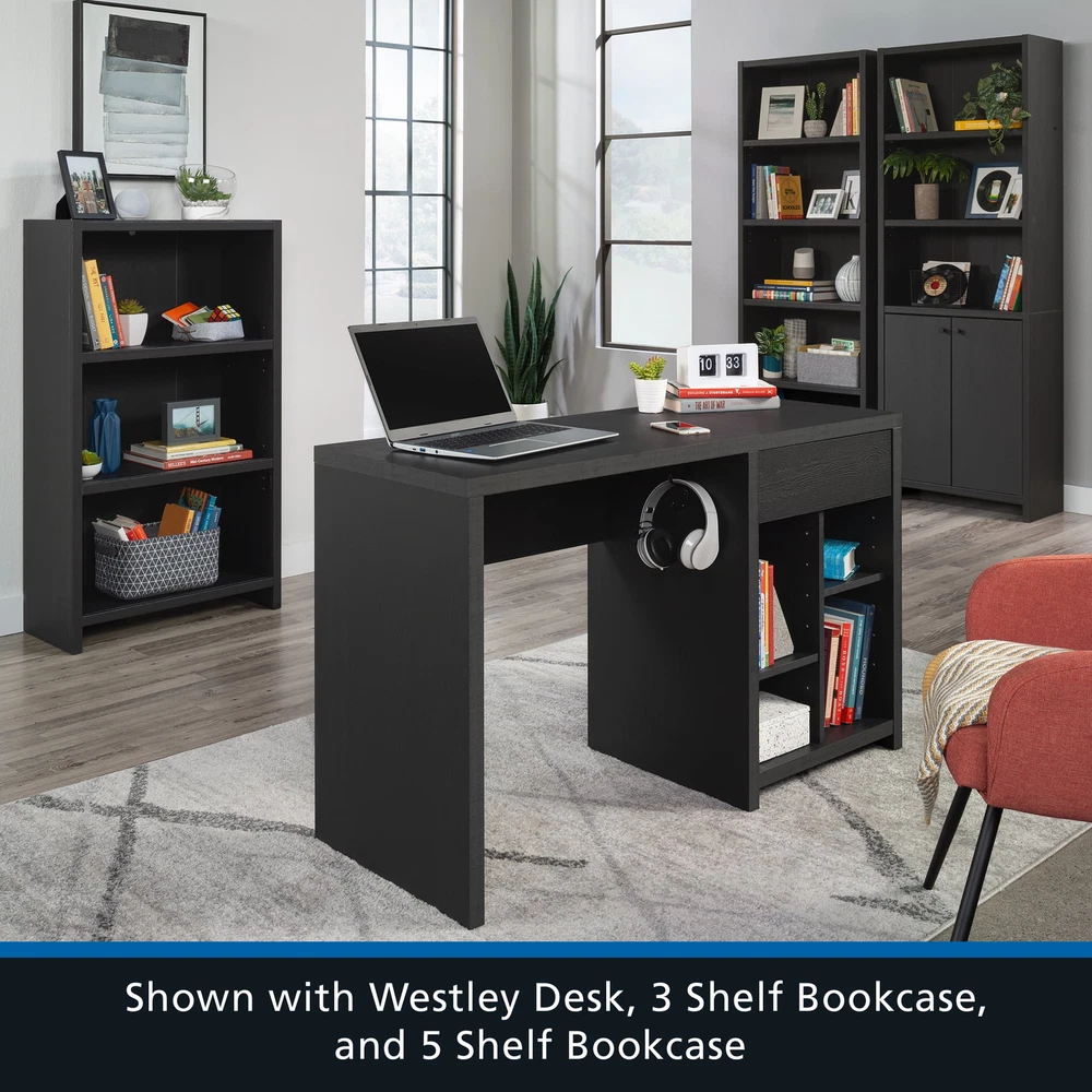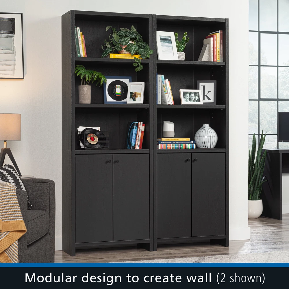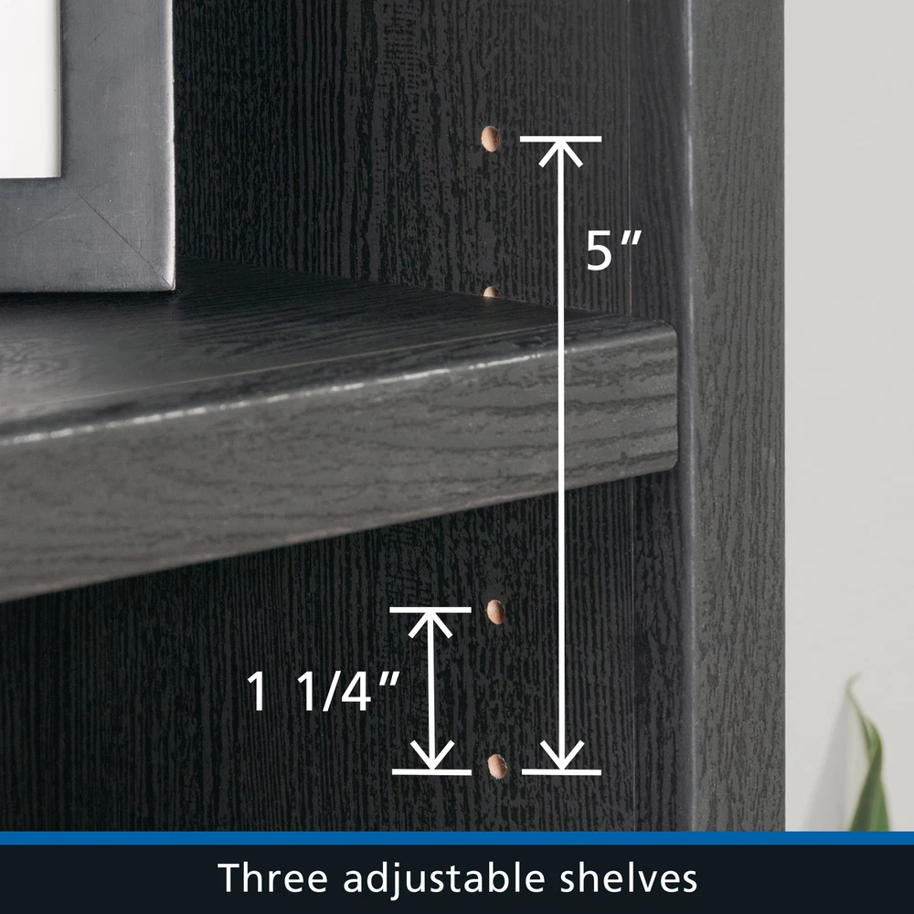 Infuse a touch of elegant style into your home with the 5-shelf bookcase from the Mainstays Westley collection, in a sleek, black wood . This versatile bookcase with doors seamlessly blends functionality with a timeless design, featuring three adjustable shelves that can be customized to accommodate collections of all shapes and sizes. This transitional style bookcase retains its outward appeal while concealing storage space below, with an adjustable shelf for added convenience. This discreet space offers a haven for tucking away clutter or storing seasonal items, maintaining a clean and organized living environment. Whether you're showcasing a children’s library, a collection of cookbooks, or organizing office supplies, this display bookcase caters to a wide variety of needs. With its strong and lightweight 1-inch panel construction, this 5-shelf bookshelf effortlessly combines transitional and neutral style with practicality and charm, seamlessly integrating into any living space. This bookcase with doors will elevate your home decor, making a bold statement that complements and enhances your living space. Assembled Dimensions: 25.83" L X 11.58" W X 72.68" H Strong and lightweight 1” panel construction ensures durability without compromising style Hidden storage behind doors to conceal clutter Three adjustable shelves for flexible storage options Model #: 437256 Box Dimensions: 59.84" L x 15.00" W x 7.60" H