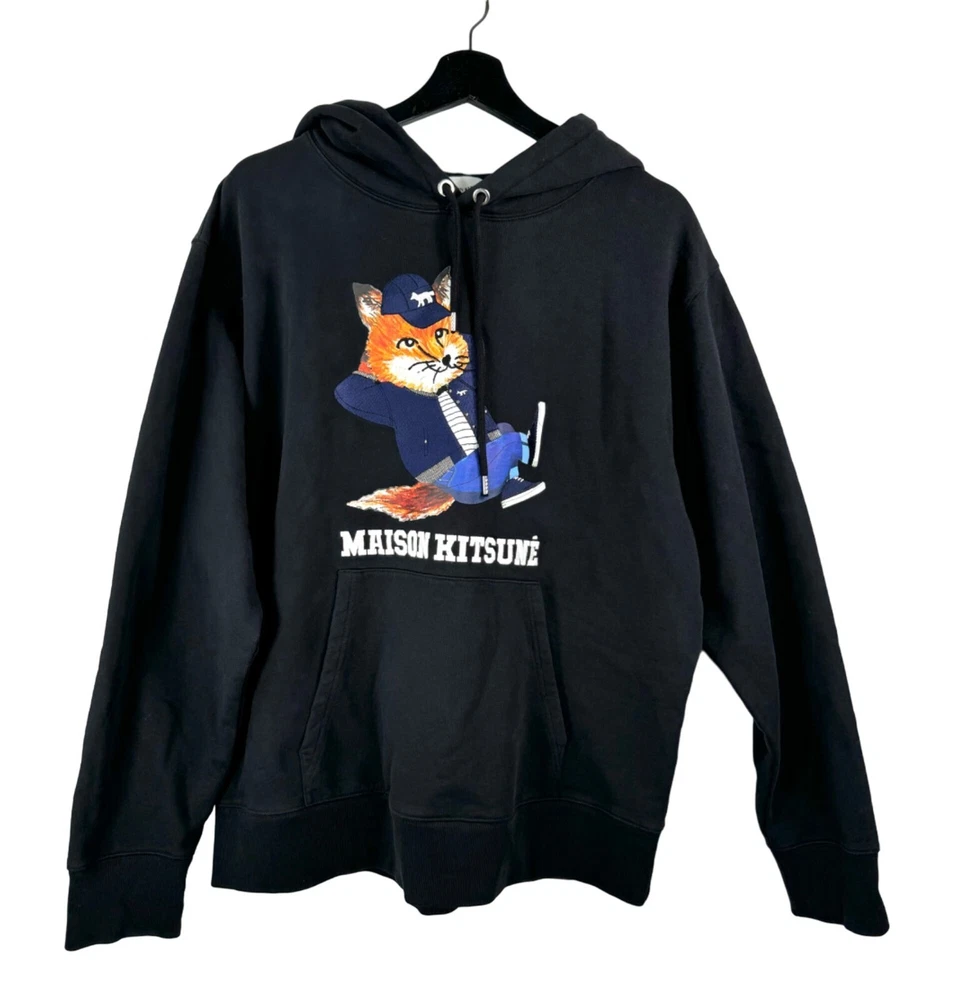 Excellent condition / like new Retails $285 "Upgrade your casual wardrobe with the Maison Kitsuné Paris Logo Embroidered Cotton Jersey Hoodie in classic black. Known for its understated luxury, this hoodie combines comfort with Parisian flair. Features: Embroidered Maison Kitsuné Paris logo for a sleek, designer touch Soft cotton jersey fabric for maximum comfort Adjustable drawstring hood for a customizable fit Classic black color, versatile for any casual outfit Ribbed cuffs and hem for a refined, structured look Flat lay: pit to pit 23" Length 27" Material: 100% Cotton embroidered, animal, fox, colorful, street wear, Paris, playful, comfy, cozy, high quality, 90s, preppy, academia, charming, refined, sophisticated, charming, heavy weight, terry cloth, high quality PLEASE check all flat lay measurements and listings carefully BEFORE PURCHASE!I put in a lot of work into hand measuring and researching each items as best as I can! Thank you so much for your consideration! Please note that: RETURN SHIP FEE IS PAID BY THE BUYER! If you are not too familiar with flat lay measurements, I recommend taking a measurement of your own clothes that you feel comfortable and compare with the measurement I provide. For returns: The items MUST BE IN SAME CONDITION AS SOLD for full refund! We all don't like returns and let's work together to minimize! Please note that RETURNS ARE NOT ACCEPTED FOR NEW WITH TAG OR NEW WITHOUT TAG ITEMS!