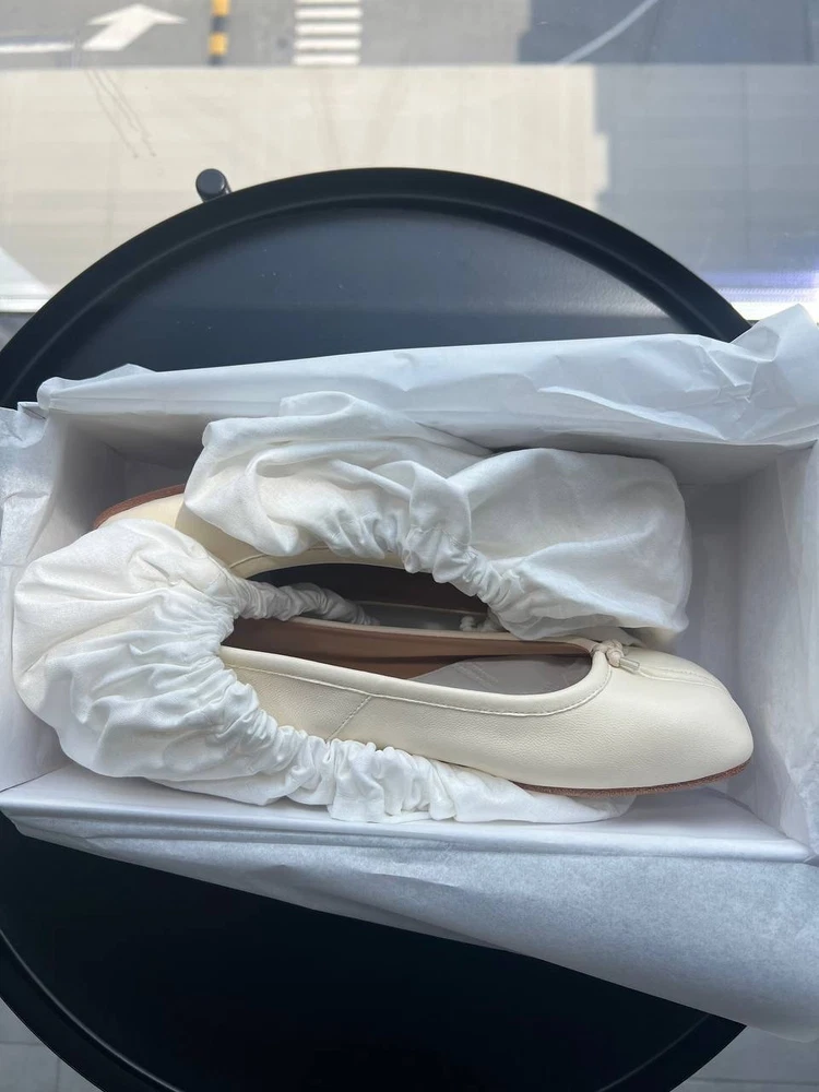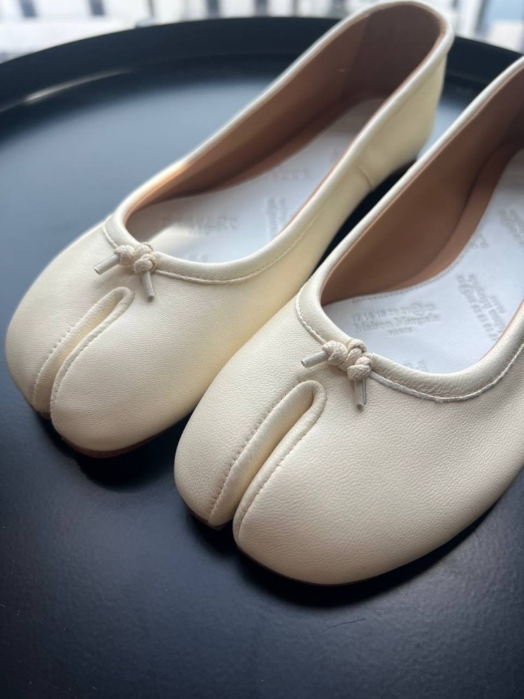 Maison Margiela Tabi Flat Ballerinas – White, Size 37 24.5cm Elevate your style with these iconic Maison Margiela Tabi ballerinas in classic white. Crafted from premium soft nappa leather, these shoes feature the signature split-toe “Tabi” design inspired by traditional Japanese footwear. Product Details: Size: EU 37 (approx. 24.5 cm foot length) Color: White Material: Nappa leather upper, leather lining and sole Signature split-toe design Slip-on style with delicate leather bow detail at the front White stitching detail on the back heel Made in Italy Condition: New Shipping: Ships from the UAE. Fast and secure worldwide delivery available. Your order will be carefully packaged and dispatched promptly to ensure it arrives safely and quickly.