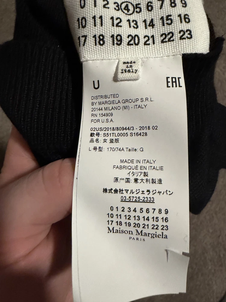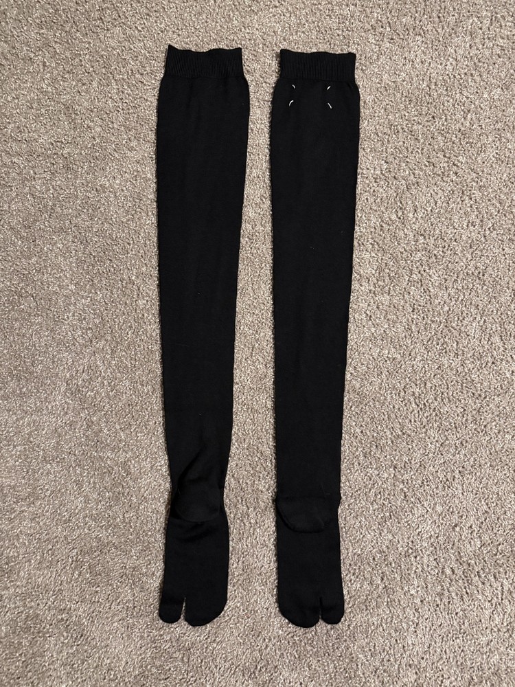 Maison Margiela Tabi Split-Toe Socks Size 1 Color: Black Material: 100% Wool Made in Italy Authentic Maison Margiela tabi split-toe knit socks. Women’s Line 4 (indicated by circled “4” on label). Never worn. No pulls, stains, or flaws observed. Original internal tags attached. Model code: S51TL0005 S16428 Soft wool construction with signature split toe design. Ships carefully packaged.
