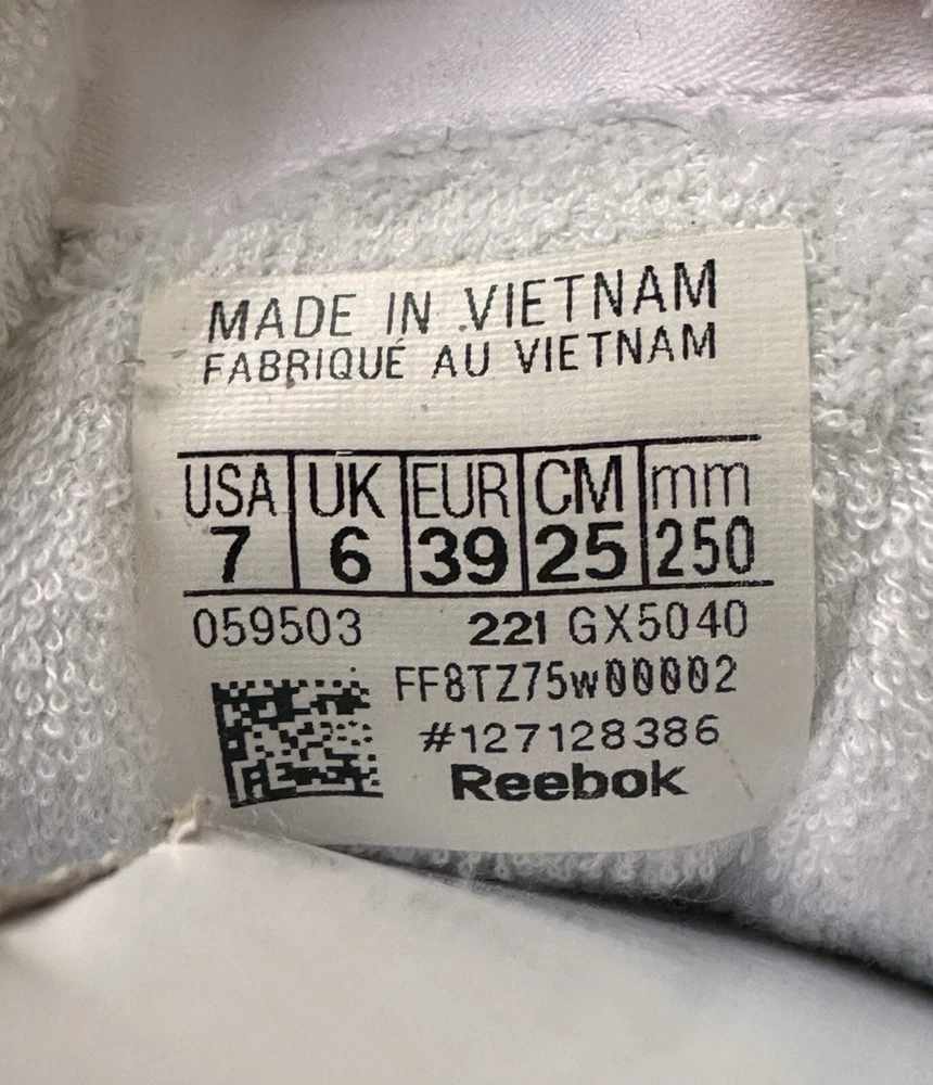 EU Shoe Size: 39 US Shoe Size: 7 Department: Men Style: Sneaker Product Line: Reebok Classic Leather Brand: Reebok Color: White Type: Casual UK Shoe Size: 6 Upper Material: leather