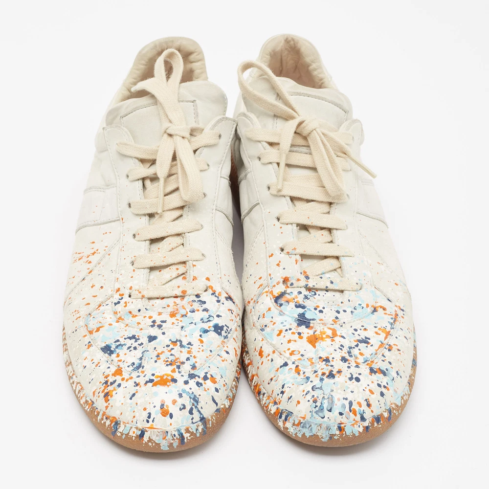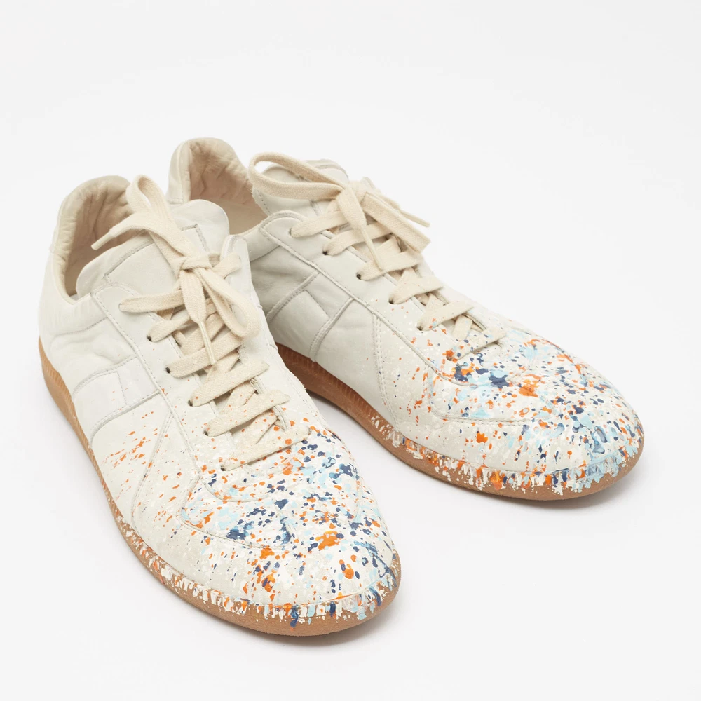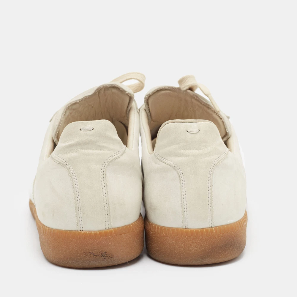 Coming in a classic silhouette, these designer sneakers are a seamless combination of luxury, comfort, and style. These sneakers are finished with signature details and comfortable insoles.Certified by The Luxury Closet - This item has gone through a detailed authentication process overseen by our experts. We offer a lifetime guarantee of authenticity on all our items. Import duties, taxes and charges are not included in the item price. These charges are the buyers responsibility. Please check with your country’s customs office to determine what these additional cost will be prior to buying. Our eBay Store About Us Contact Us Add to Favorite Sellers Maison Martin Margiela Grey Nubuck Leather Replica Sneakers Size 44 $292.6 Coming in a classic silhouette, these designer sneakers are a seamless combination of luxury, comfort, and style. These sneakers are finished with signature details and comfortable insoles. Product Details Brand Color Grey Dimensions Material Nubuck Leather Size 44 Outsole Width 10 cm Outsole Length 31 cm Heel Height Includes The Luxury Closet Packaging Certified by The Luxury Closet This item has gone through a detailed authentication process overseen by our experts. We offer a lifetime guarantee of authenticity on all our items. How We Check The in-house team of experts at The Luxury Closet is highly trained to verify the authenticity and the condition of the luxury products. They ensure that only 100% authentic items are put on sale.The evaluation process is unique with its own mix of assessment criteria and differs according to the category. Each item is evaluated based on the following combination of hallmarks, hardware, stitching, symmetry, material, craftsmanship, stamping, codes, hologram stickers, and packaging. Our authenticators also check if the items have been modified or amended (e.g., aftermarket diamonds, replaced batteries, repaired bags, etc.) International Buyers Import duties, taxes and charges are not included in the item price. These charges are the buyers responsibility. Please check with your country’s customs office to determine what these additional cost will be prior to buying.