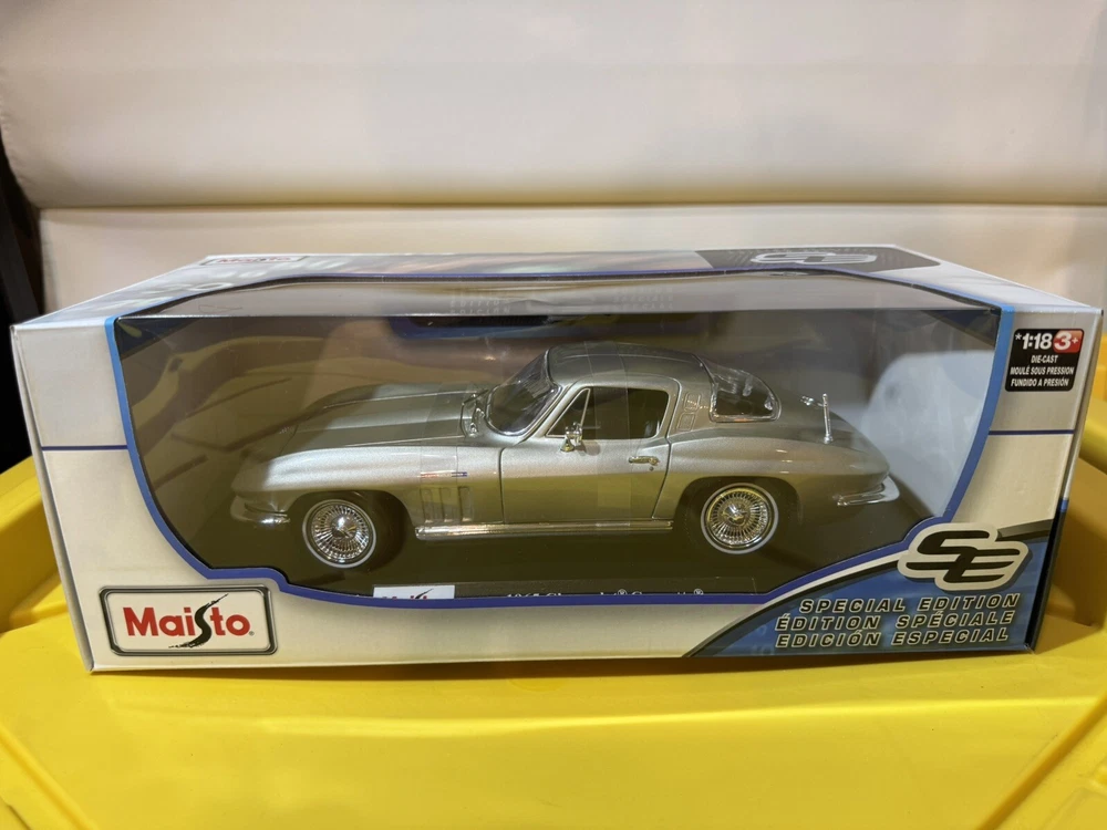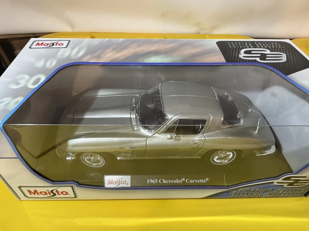 Experience the thrill of owning a miniature version of an American classic with this Maisto 1:18 scale diecast model of the 1965 Chevrolet Corvette. The attention to detail on this special edition collectible is truly remarkable, capturing the essence of the iconic '65 Vette in sleek gray finish. From the meticulously crafted interior to the accurately modeled exterior, this Maisto Supercar Collection piece is a must-have for any car enthusiast or collector. Crafted from high-quality diecast material, the model promises durability and a substantial feel. The 1965 Chevrolet Corvette model is not just a toy, but a piece of art that celebrates the rich history of automobiles. It comes new in the box, making it an ideal display item for your home or office. Add this stunning Maisto diecast car to your collection and enjoy the beauty of a classic Chevy Corvette at a glance. BRAND NEW