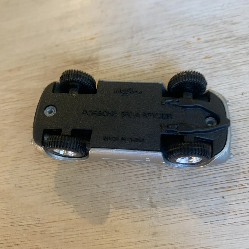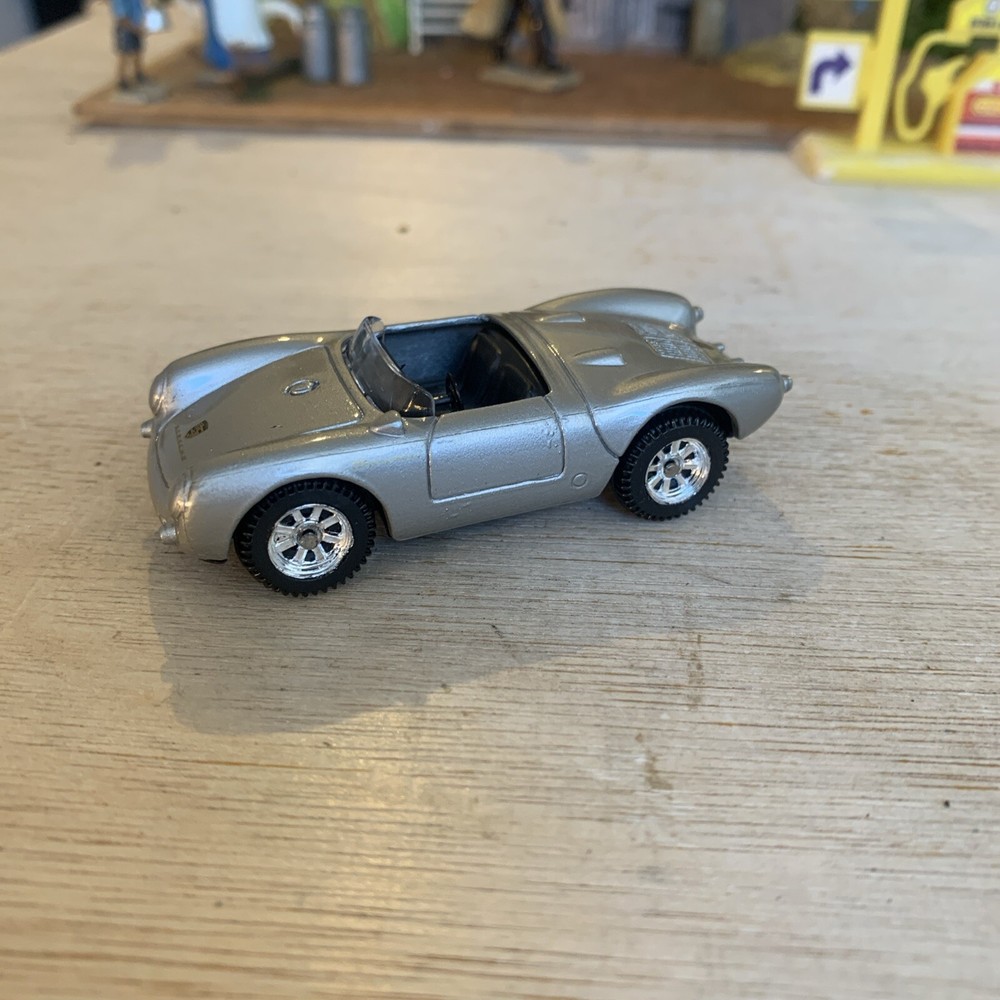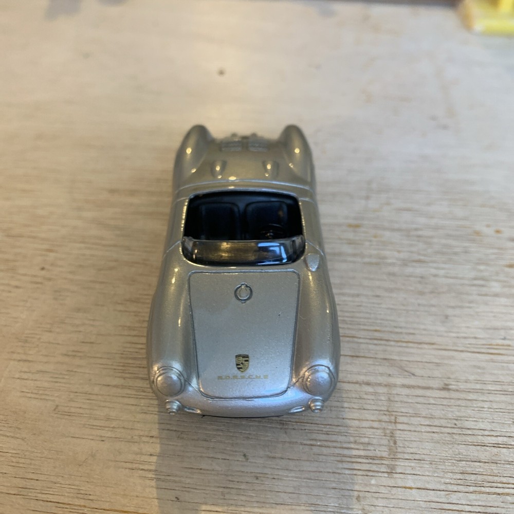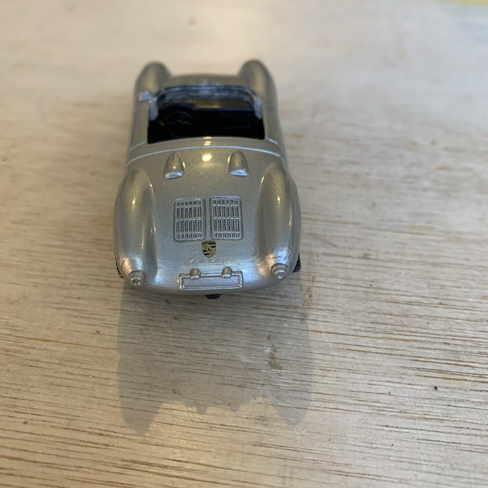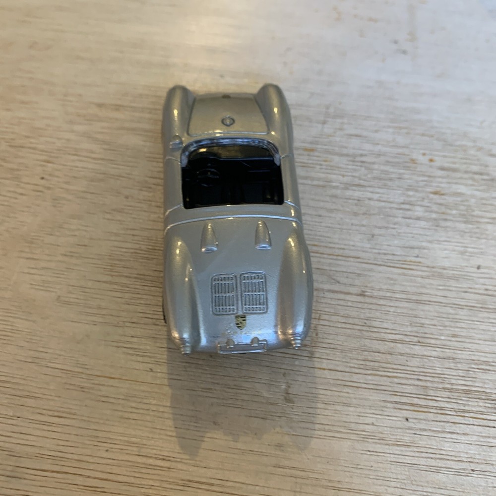 This is a Maisto diecast car, specifically a Porsche 550 A Spyder convertible sports car in silver. The model is from the 1960s and is in 1:64 scale. It was manufactured in 1996 as part of the Maisto Diecast Cars series.