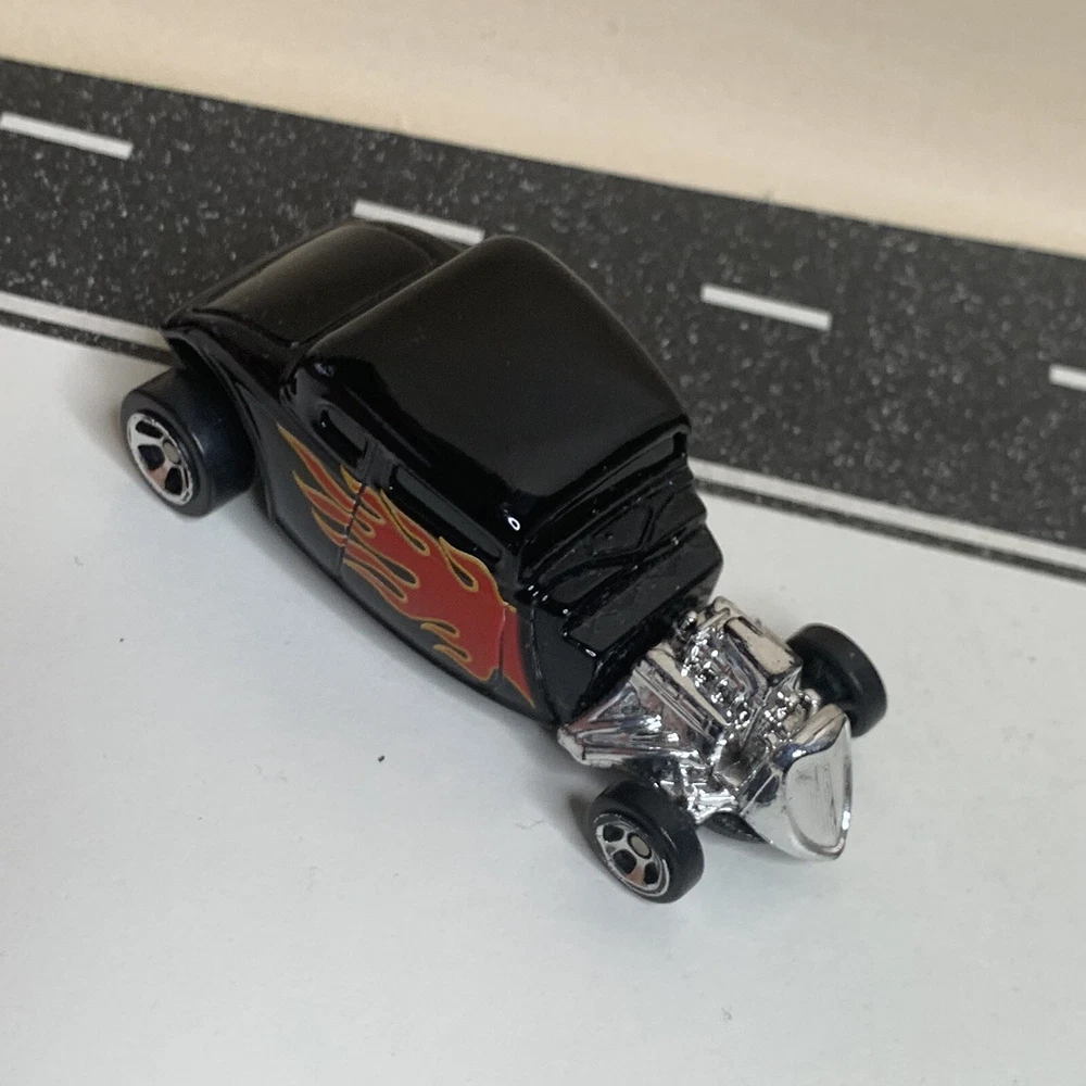 HomeMaisto 1934 Ford Hot Rod Coupe Black w/Flames & Chrome 5 Spoke Wheels 1:64 NM