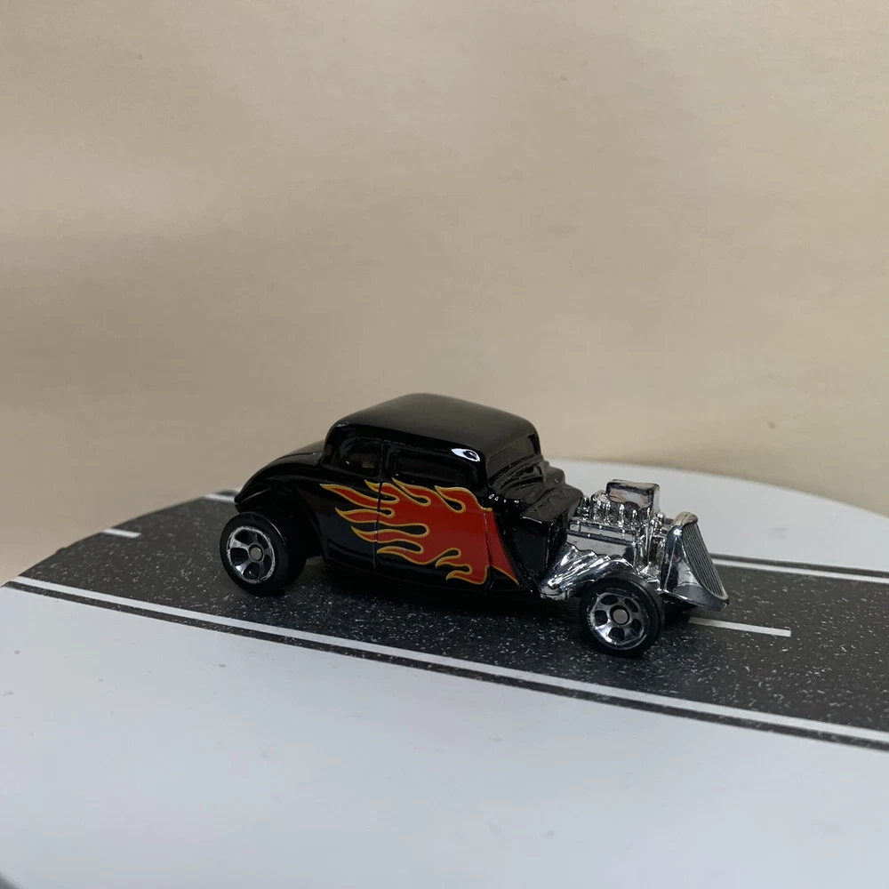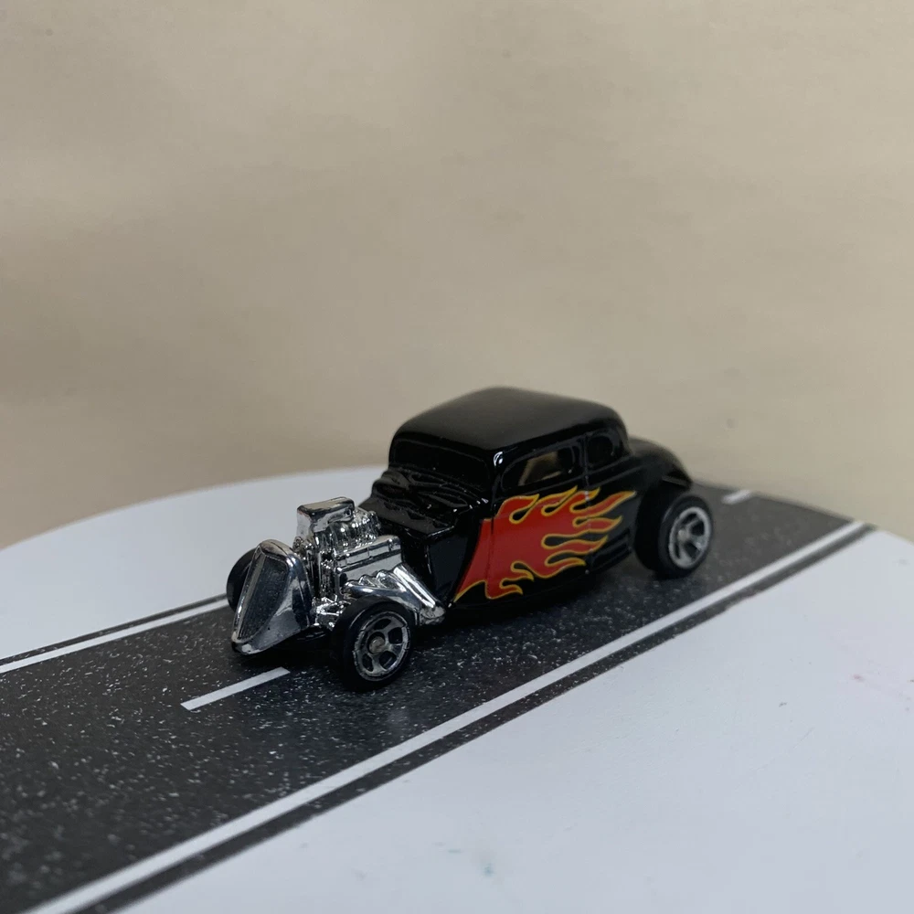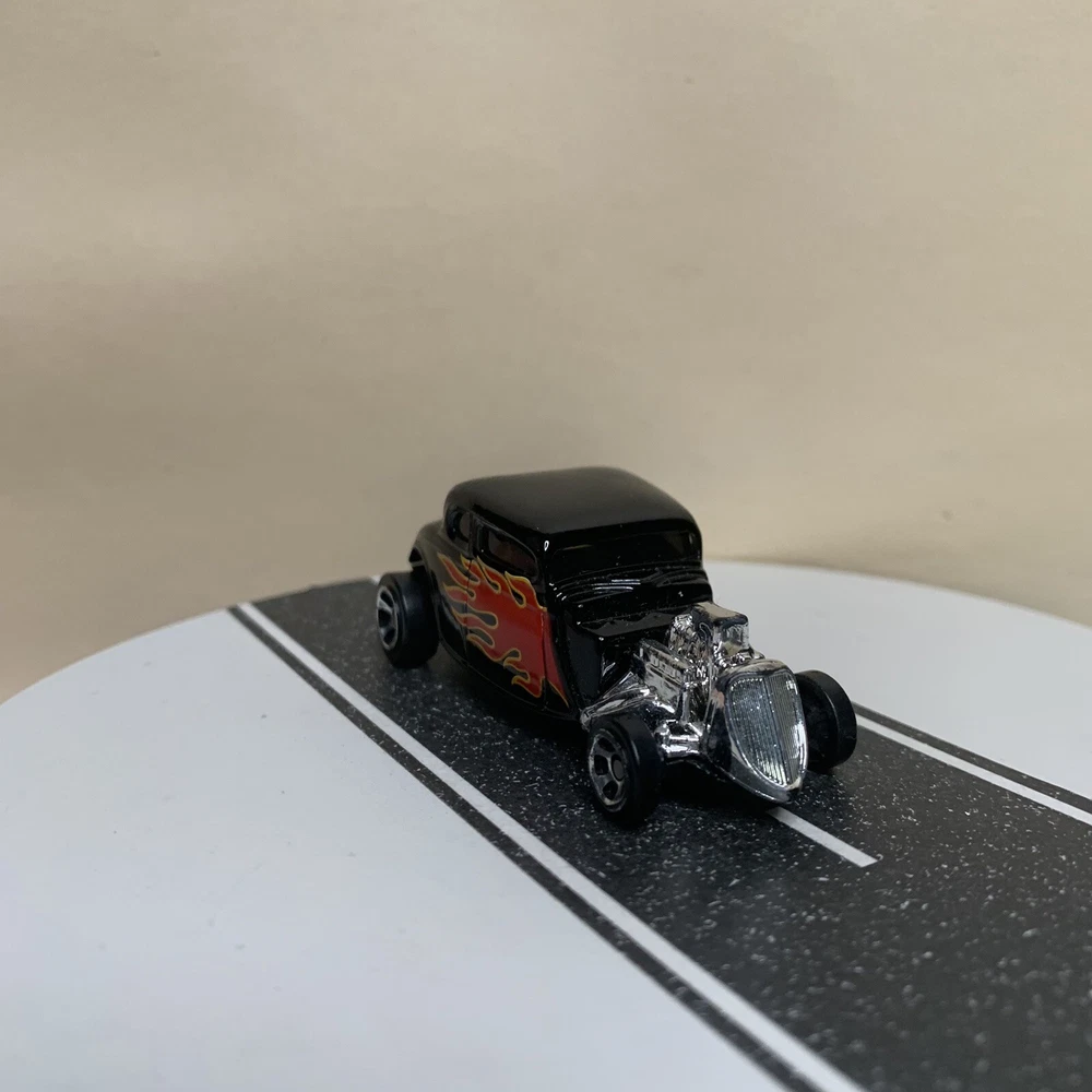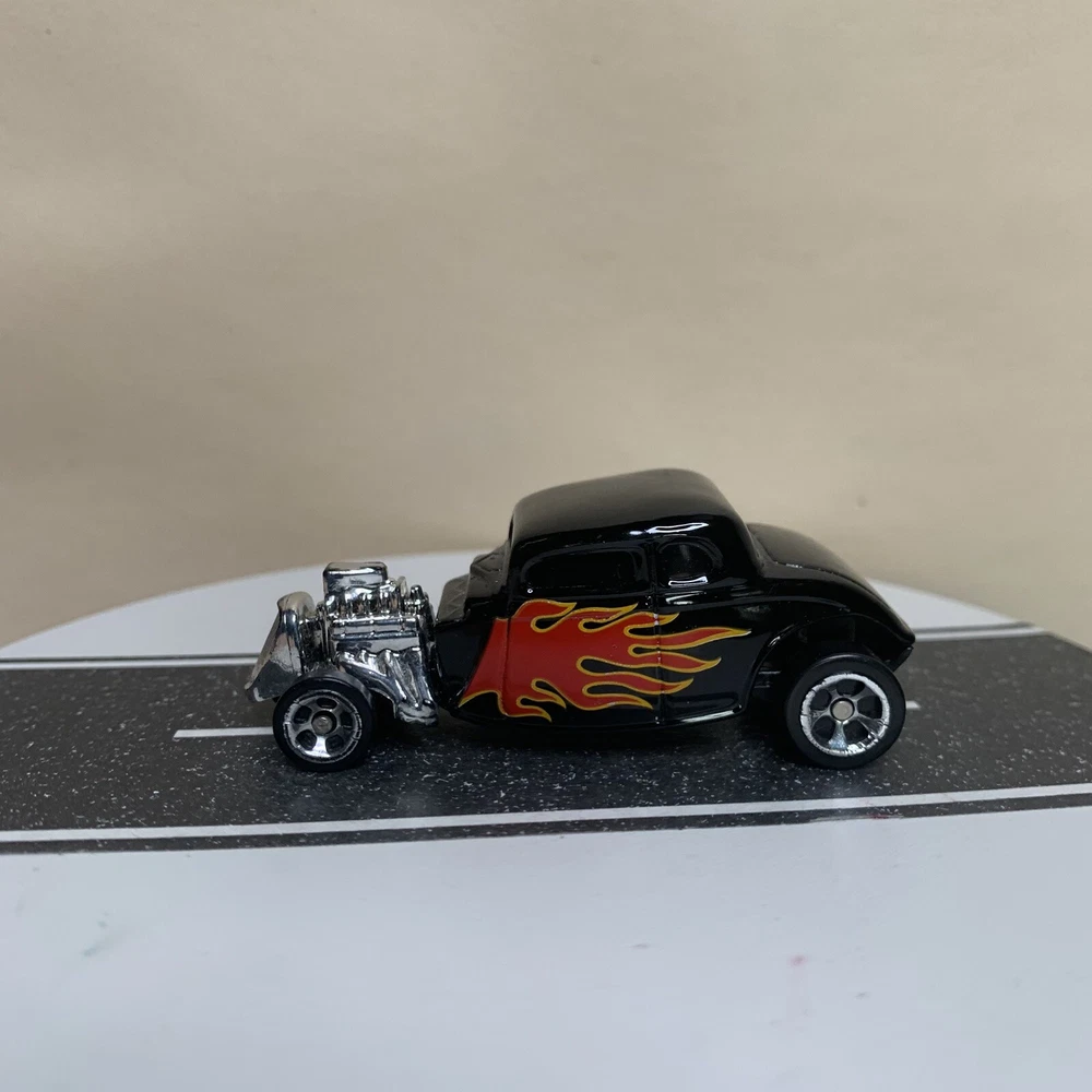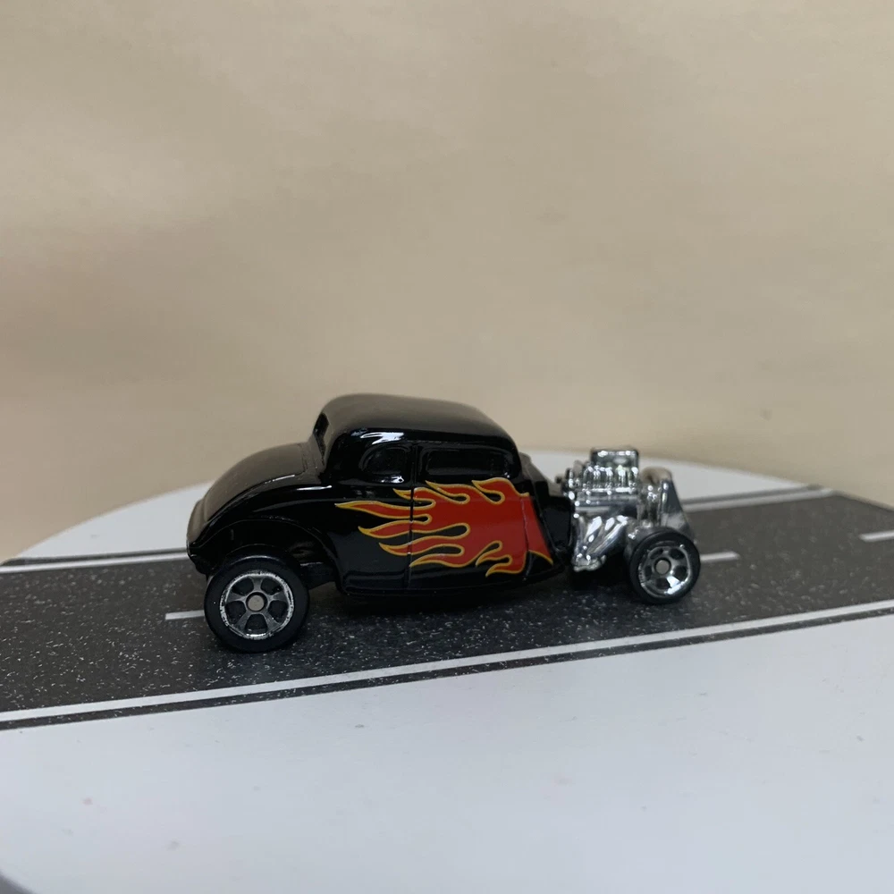 Maisto 1934 Ford Hot Rod Coupe Black w/Flames & Chrome 5 Spoke Wheels 1:64 NM
