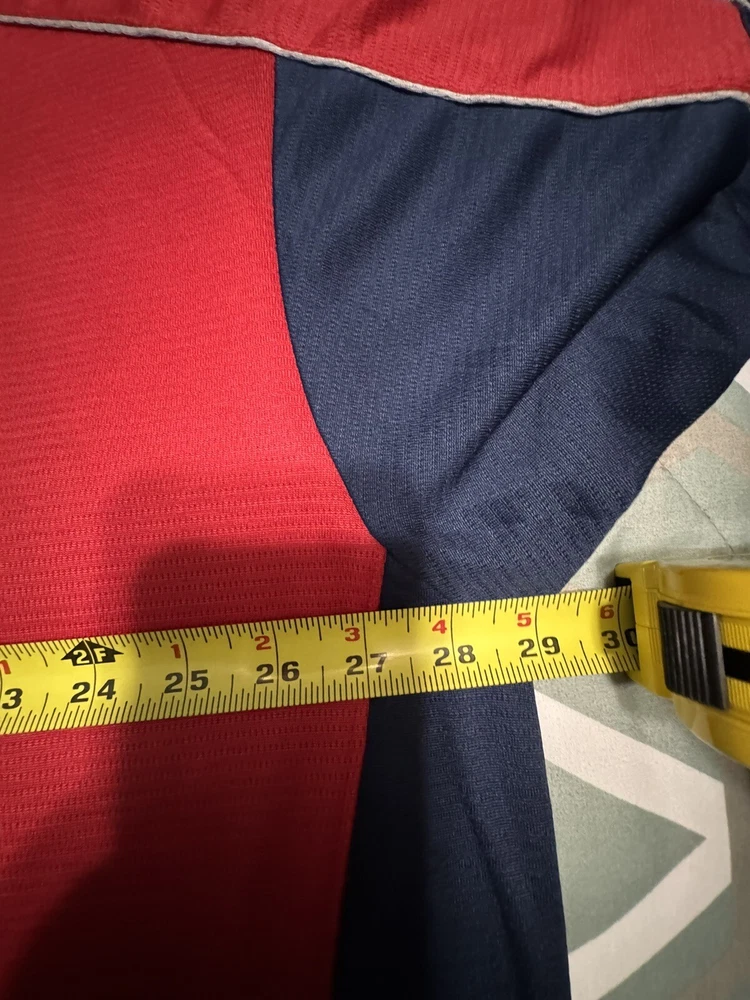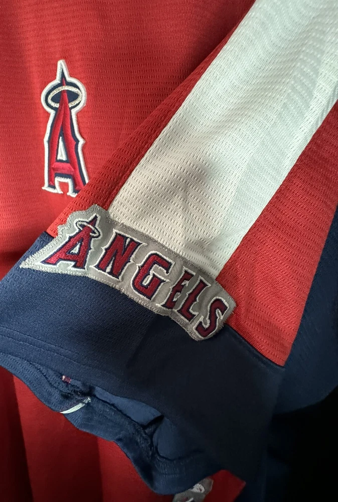 Gender:MenLeague:Major League (MLB)Color:RedOfficially Licensed:YesTeam:Anaheim AngelsSport:BaseballCountry/Region of Manufacture:UnknownProduct:ShirtSize:Pit To Pit 29 InchesBrand:Majestic