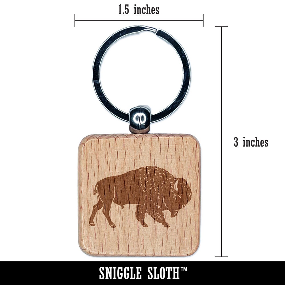 Majestic Engraved Bison Buffalo Wooden Keychain Charm Tag
