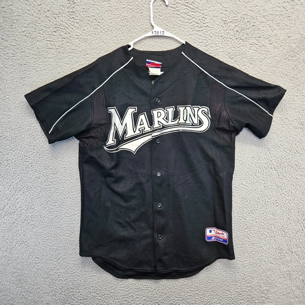 Majestic Miami Marlins MLB Baseball Jersey Kids Size Large Black