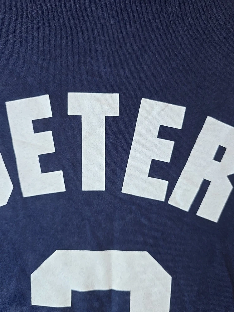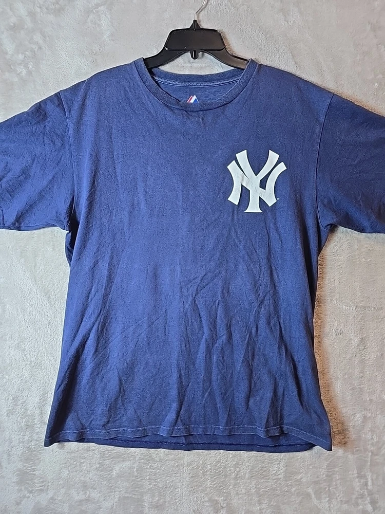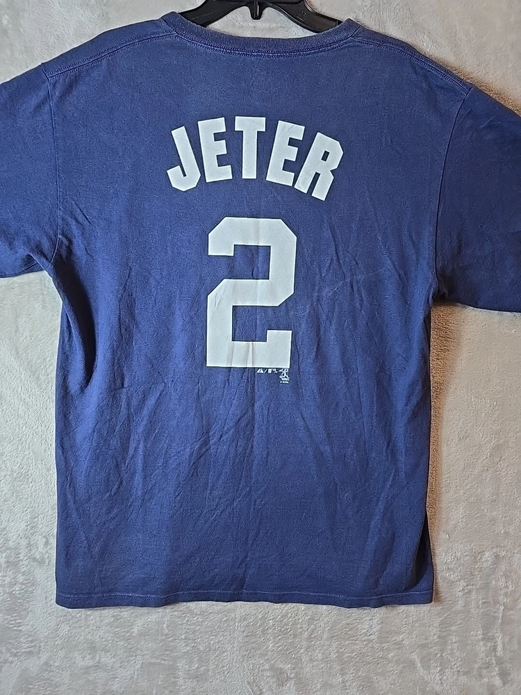 NY YANKEES DEREK JETER T-SHIRT MRNS LARGE MAJESTIC. PRE-OWNED PLEASE REVIEW PICTURES AND MEASUREMENTS FOR BETTER DESCRIPTION OF THE ITEM