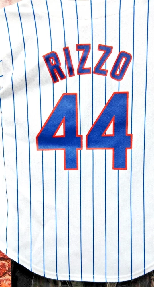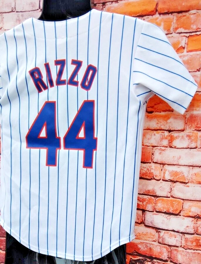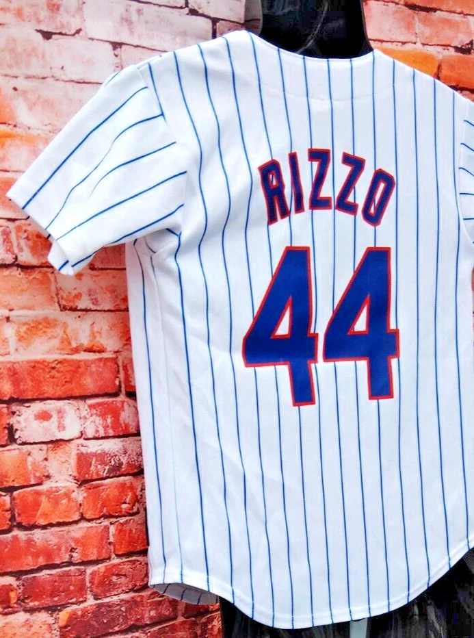 Event/Tournament: 1 Player: Anthony Rizzo Country/Region of Manufacture: Honduras Brand: Majestic League: Major League (MLB) Team: Chicago Cubs Color: White Pre & Post Season: Regular Season Officially Licensed: Yes Gender: Unisex Children Sport: Baseball Product: Jersey Size: S