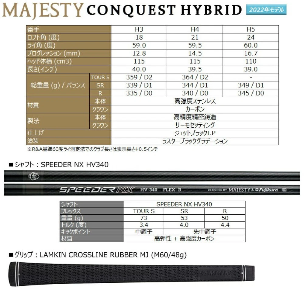 Majesty 2022 CONQUEST Hybrid 3H RH Speeder NX HV340 Graphite Flex Regular HC New