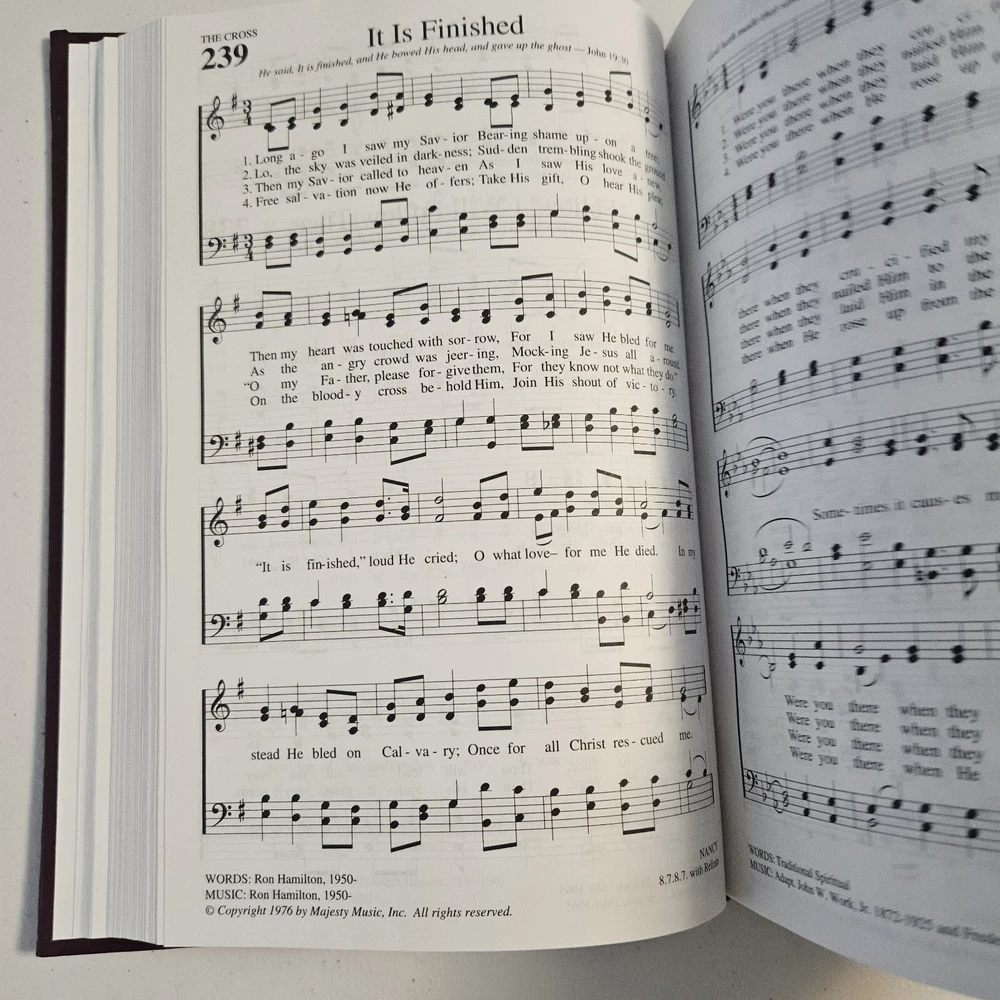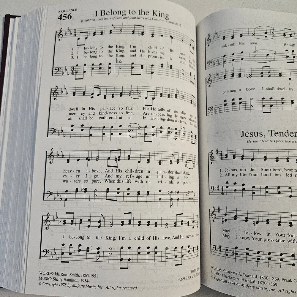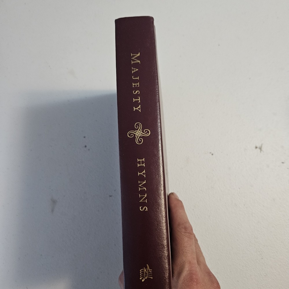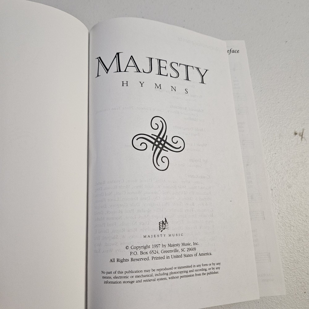 1. This vintage 1997 Majesty Hymns hymnal is a treasure! The hardback cover has slight corner wear but remains sturdy, and the pages are clean with no markings. Perfect for collectors or worship lovers—rare find in great condition!