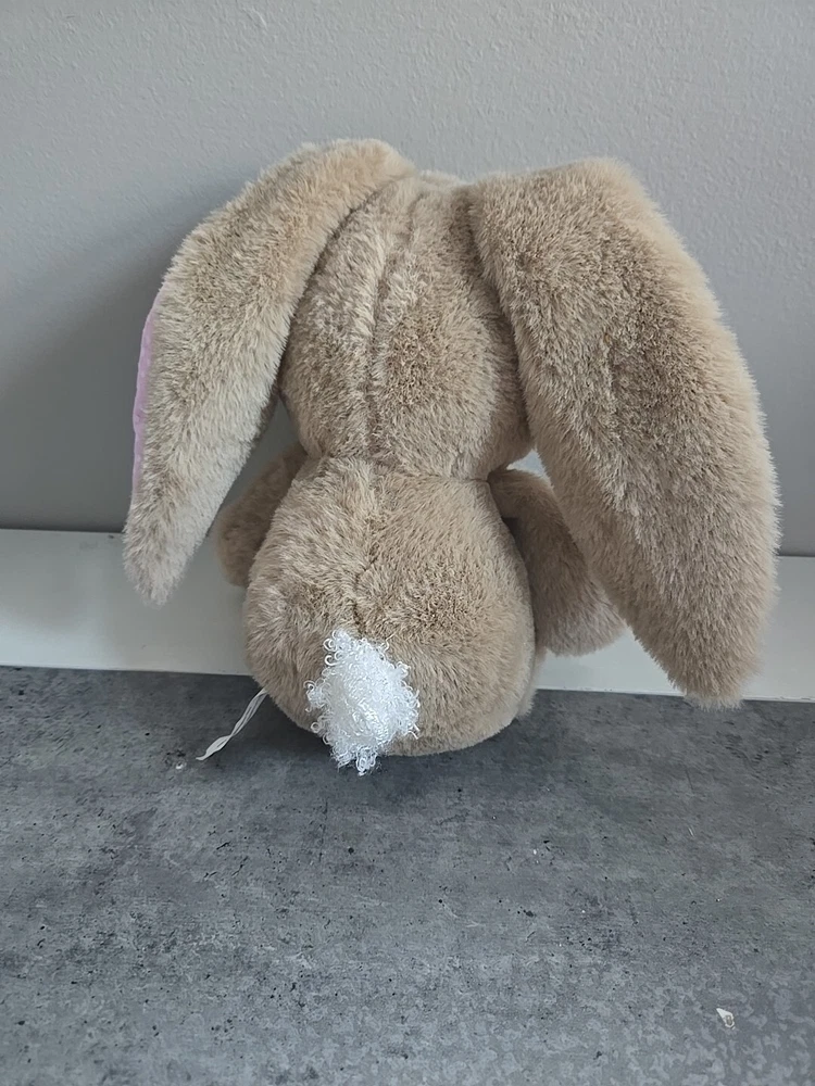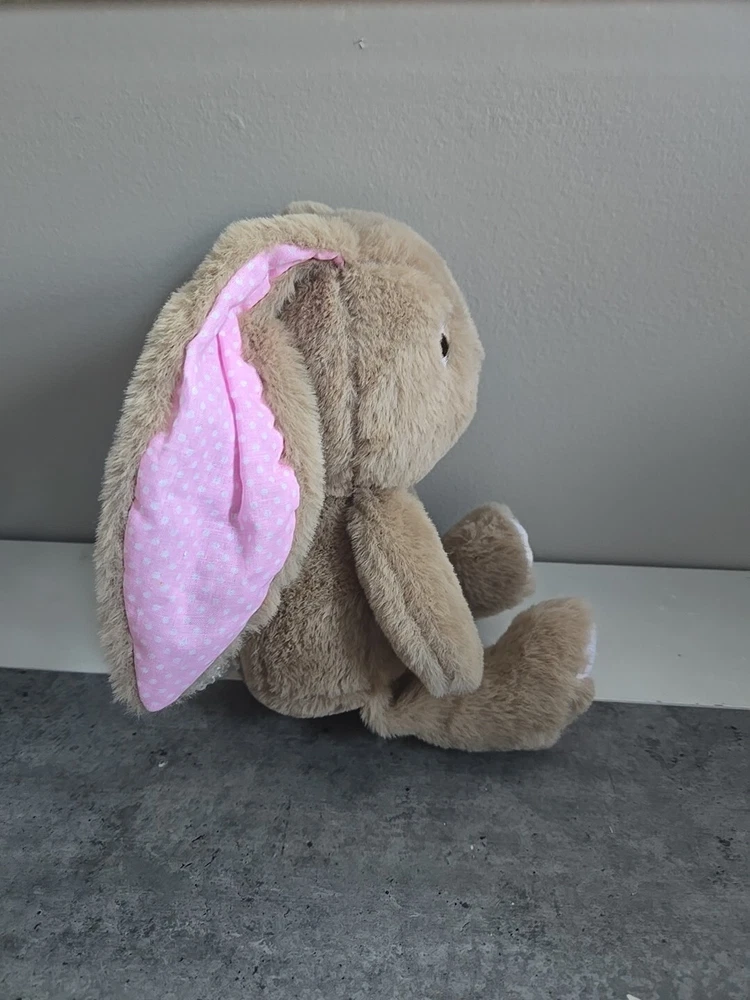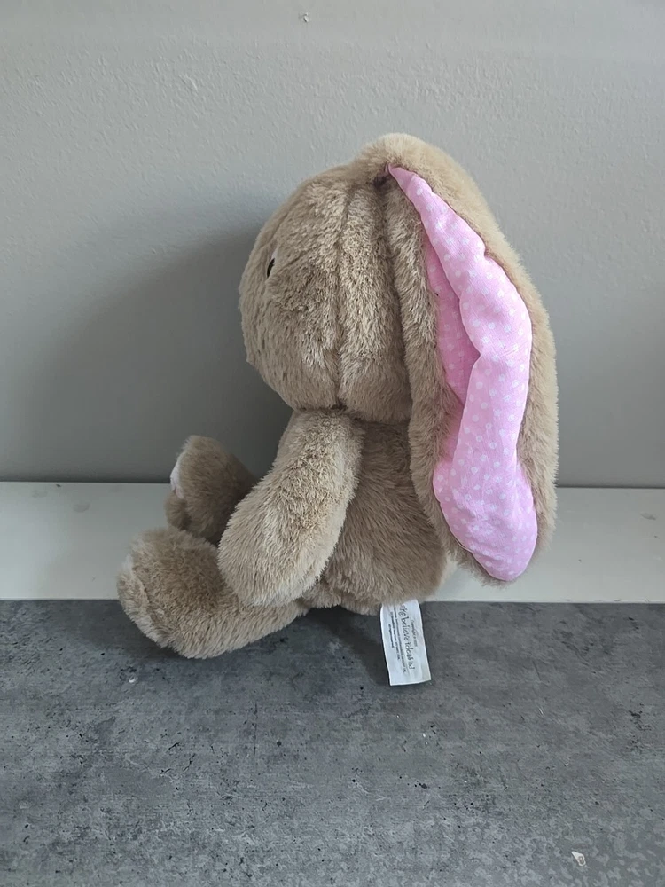 Make Believe Ideas Bunny Plush Stuffed Toy Tan Animal Rabbit Pink Polka Dot Ears Has been gently loved from a pet free smoke free home