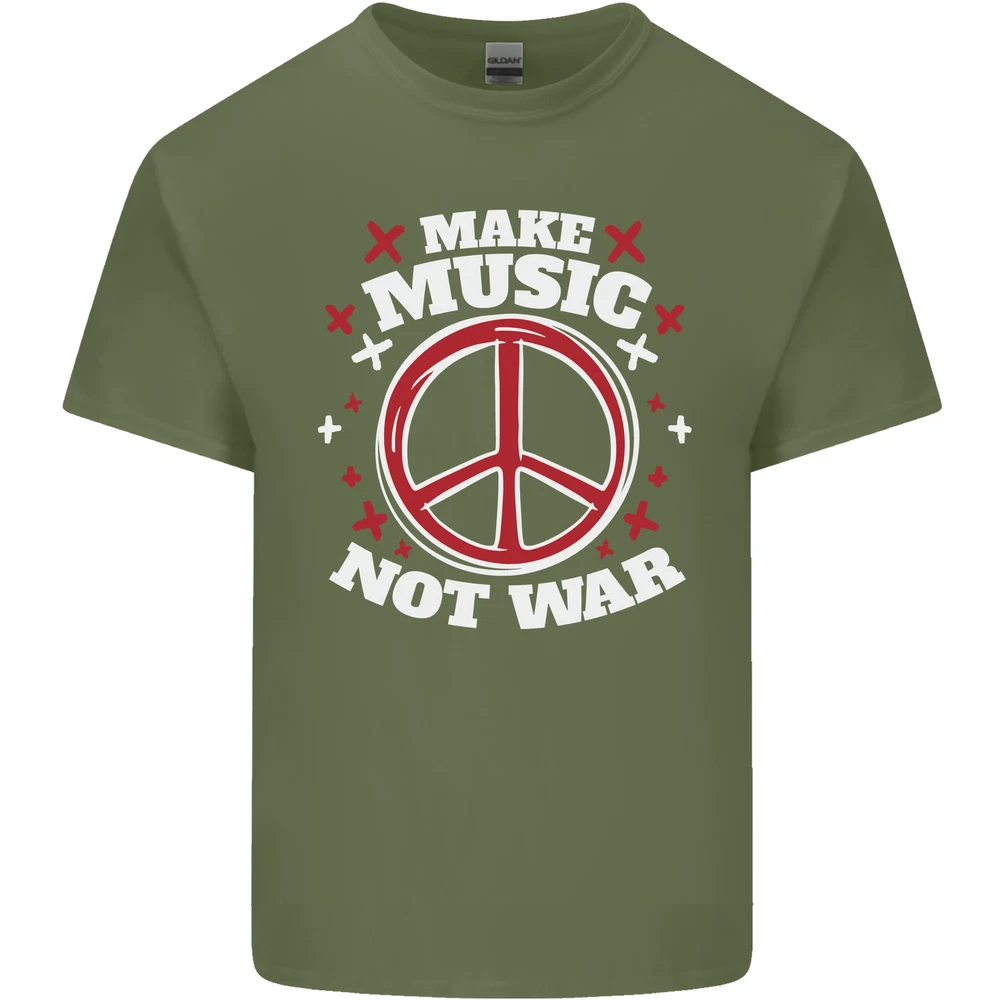 Make Music Not war Peace Hippy Rock Anti-war Mens Cotton T-Shirt Tee Top