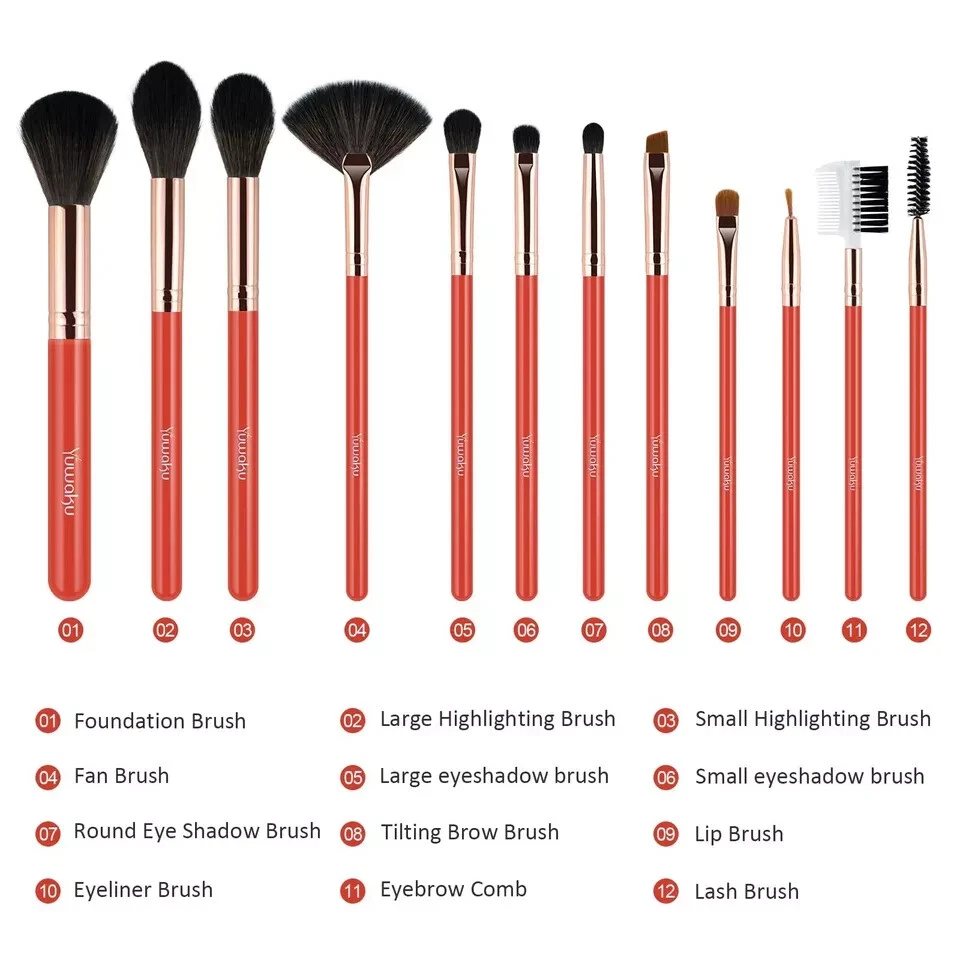 【For Beginners and Professionals】Including 12pcs professional makeup brushes– from an array of eyeshadow brushes to a concealer brush to blusher brushes,For beginners & accomplished pro. 【Designed for Your Makeup Artistry】The dense bristles are super soft and come with the promise of no shedding, Velvet-soft bristles and ergonomic slim handle are a result of innovations in science and makeup beauty. 【Makeup Set for Sensitive Skin】Whether you’re a powder princess or a liquid lover (or both!) ,Whether you choose a smoky-eyed vibe for date night, or a ‘no makeup’ makeup look, brochas de maquillaje profesional can avoiding any irritation of the sensitive skin on your face and neck. 【Recyclable Materials】Despite the absolute bargain price, the brushes are all crafted from sustainably-sourced birchwood and highest-quality fibres.100% synthetic bristles are cruelty-free, Yep, When it comes to earth-friendly makeup brushes, The Brush is the real deal. 【For Travel and Gift】Premium Makeup kit is perfect for adding glow to tired-out travel faces and make great gifts for family and friends, If you are not satisfied, Please contact us, We offer 100% returns and exchanges. What is it? A 12-piece collection of professional makeup brushes for a flawless full-face application. 👄👄 Why we love: Professional quality makeup brush kit Can be used with powder, cream, and liquid formulas 100% synthetic bristles are cruelty-free Talk about an amazing deal: 12 professional makeup brushes ! This complete makeup brush set gives you all the tools to blend foundation, sweep blush, conceal imperfections, define eyes, and create any look. Each brush is ergonomically designed to fit perfectly into your hand with a no-slip grip for a stunning full-face application every time. 👄👄 Set includes: Foundation Brush Large Highlighting Brush Small Highlighting Brush Fan Brush Round Eye Shadow Brush Eye Shadow Brush Large Eye Shadow Brush Tilting Brow Brush Lip Brush Eyeliner Brush Lash Brush Eyebrow Comb
