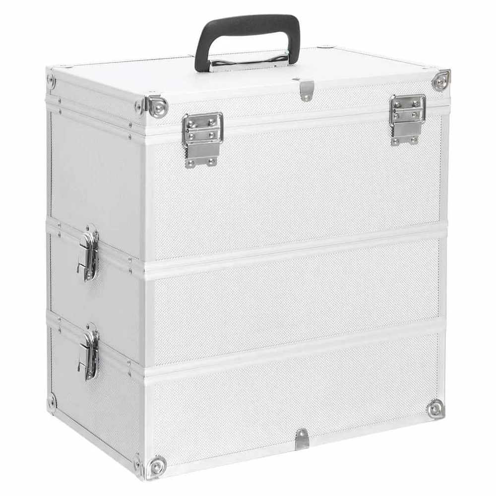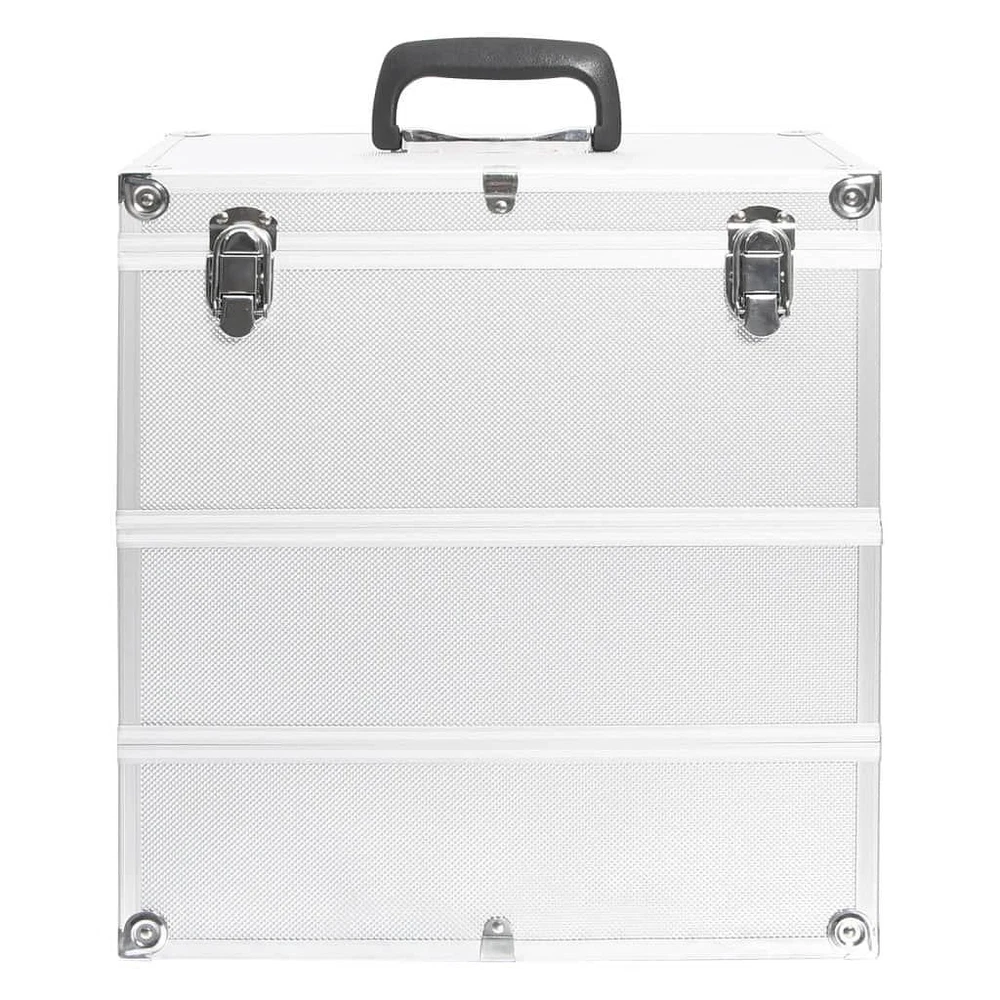 EAN:8718475730033 Number of Packages:1 parcel Diameter:0 in Details: Our make-up case is the ideal solution for keeping your cosmetics neatly organized. Simply pack everything you need in this practical beauty case and take it with you! Made of wood, ABS sheeting, as well as aluminum, this make-up case will handily store your cosmetics and maintain them in perfect condition. This vanity case features 3 detachable tiers, providing ample storage space for your cosmetics and beauty products. Additionally, it features a carrying handle which enables you to easily take along everywhere you go! Color: Silver Material: Aluminum, ABS and wood Dimensions: 14.6" x 9.4" x 15.7" (L x W x H) With 3 detachable tiers With a carrying handle California Proposition 65