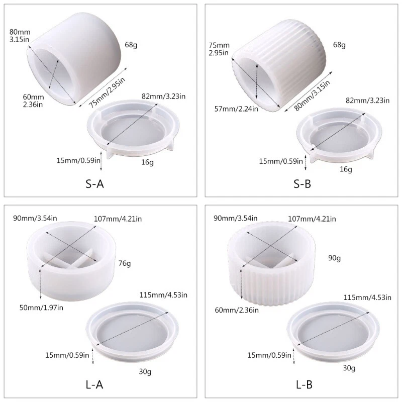Makeup Insert Cup Jewelry Box Mirror Silicone Mold For Resin Casting Features: Package includes: 1 set of storage box resin silicone mold This silicone mold is made from silicone, flexible, and reusable. The Feature: and reliable, not easy to deform or break. Easy to use: The of our mold is easy, suitable for novices. Various applications: Suitable for most resins and casting materials, such as epoxy resin, resin, cement clay, soap, wax, polyester resin, mortar Specifications: Silicone Size: Small/Large Type: Smooth/Stripe Package Includes: 2pcs/set Silicone Molds note: 1.Please allow 1-2cm errors due to manual measurement, make sure that you do not mind before you order. 2.Due to difference between different monitors, the picture may not reflect the actual color of the item.