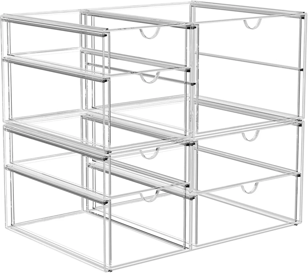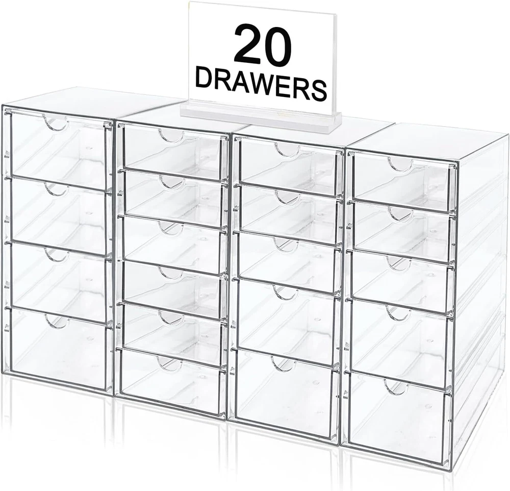 Makeup Organizer, 20 Drawers, 4 Set, Clear Storage Drawers